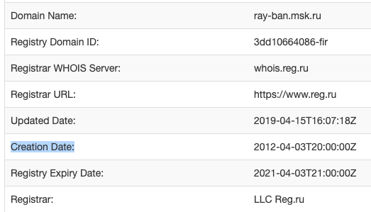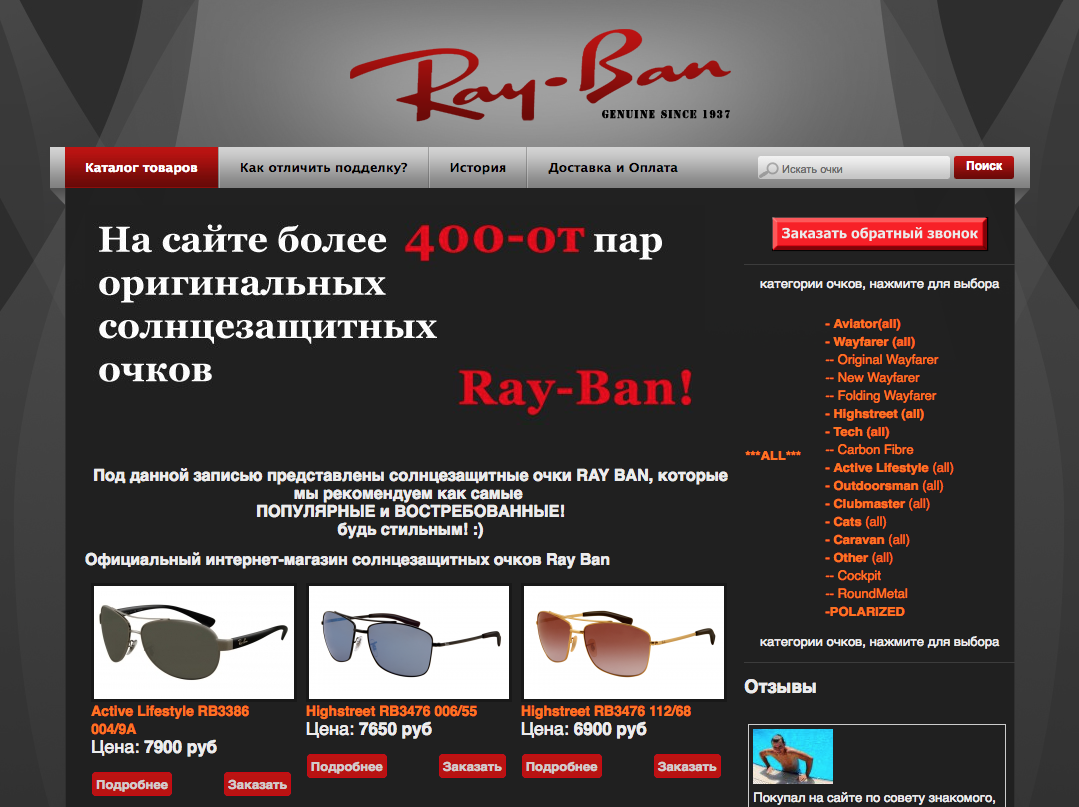 2. После официальных доменов ray-ban.com и ray-ban.ru самое близкое по звучанию и наполнению