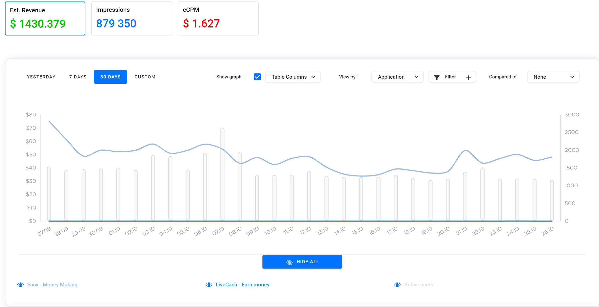 Доходы: Общий доход приложения со всех партнерок ~ 1600$, выплата происходят каждый месяц 5-6 числа.