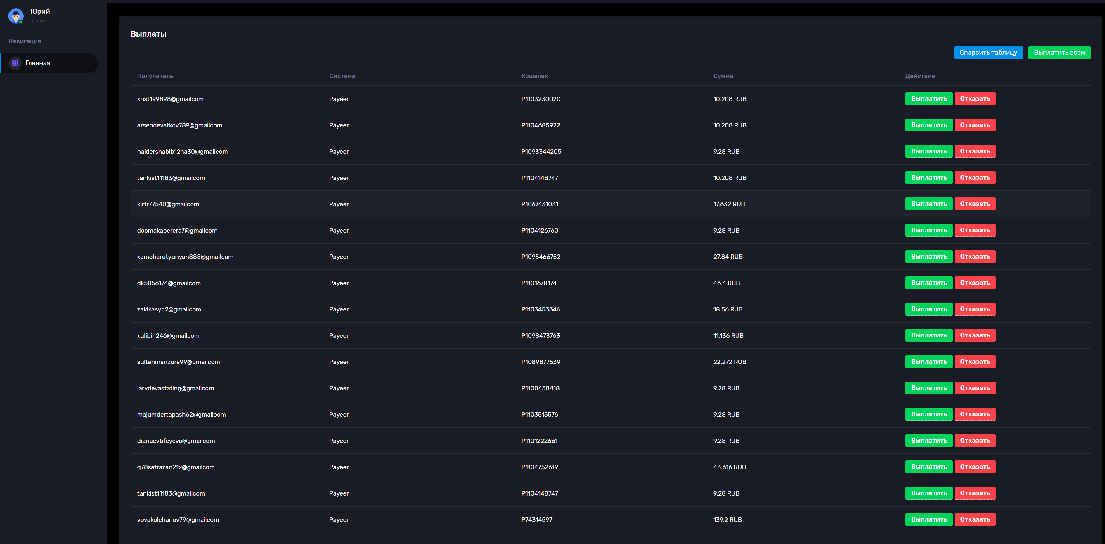 Реализована система автоматического вывода средств при помощи раyееr арi.