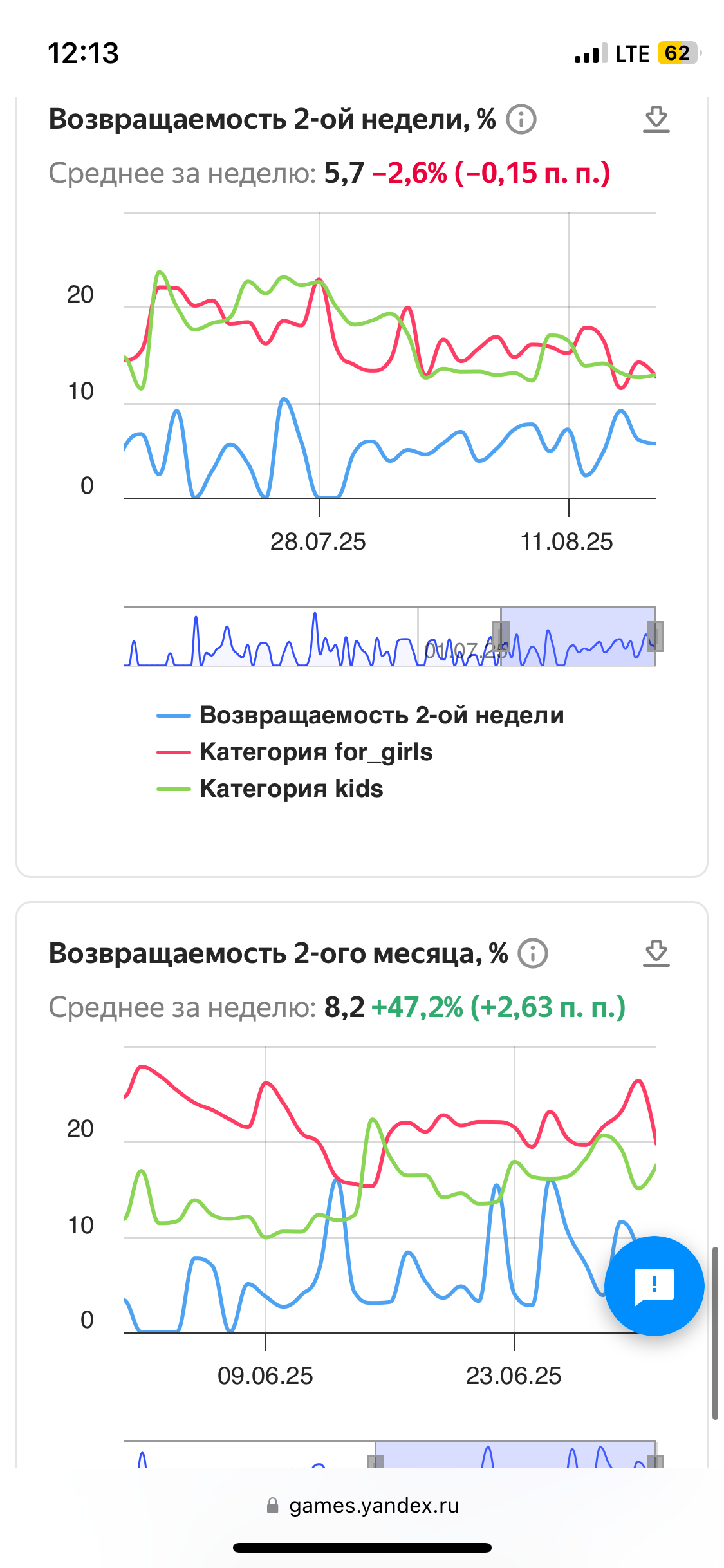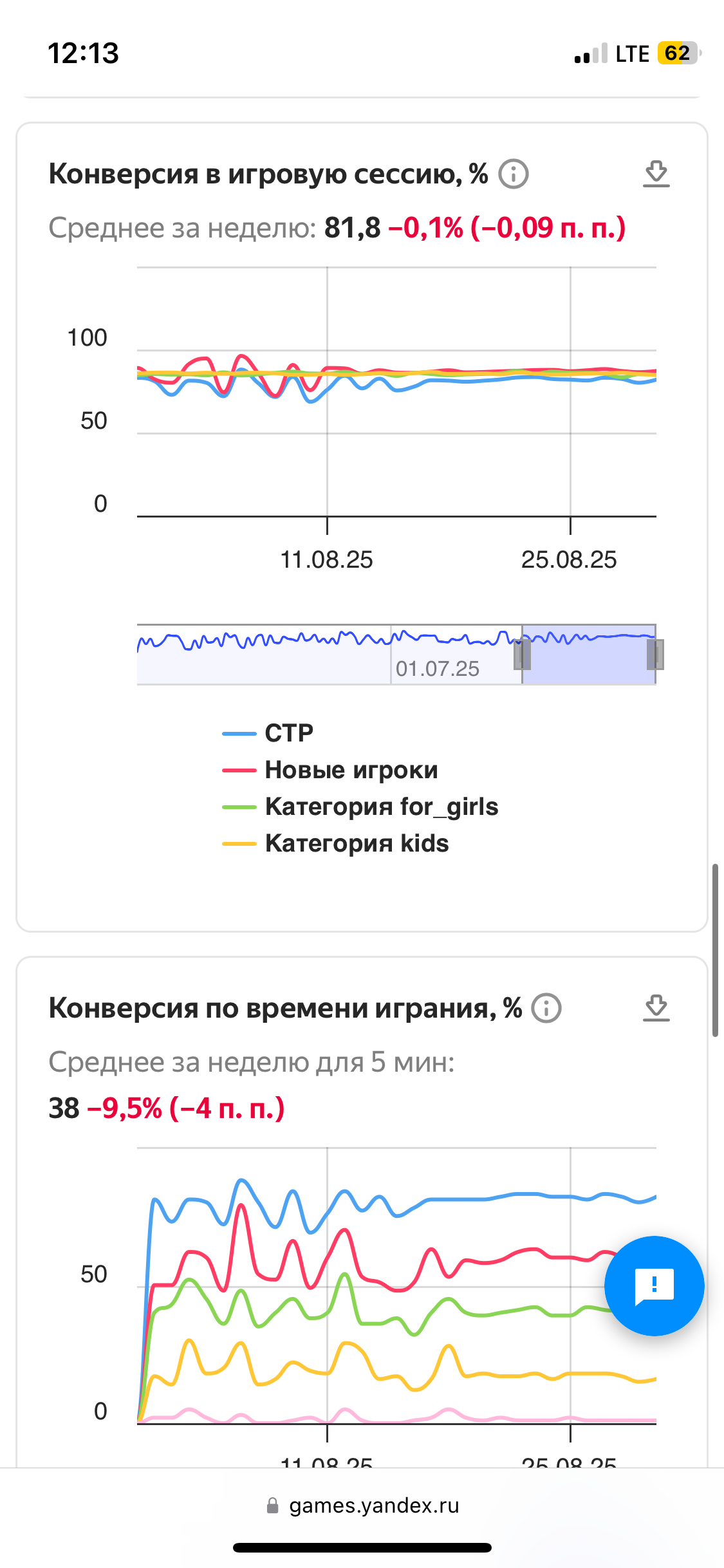 Конверсия в игровую сессию среднее за неделю
