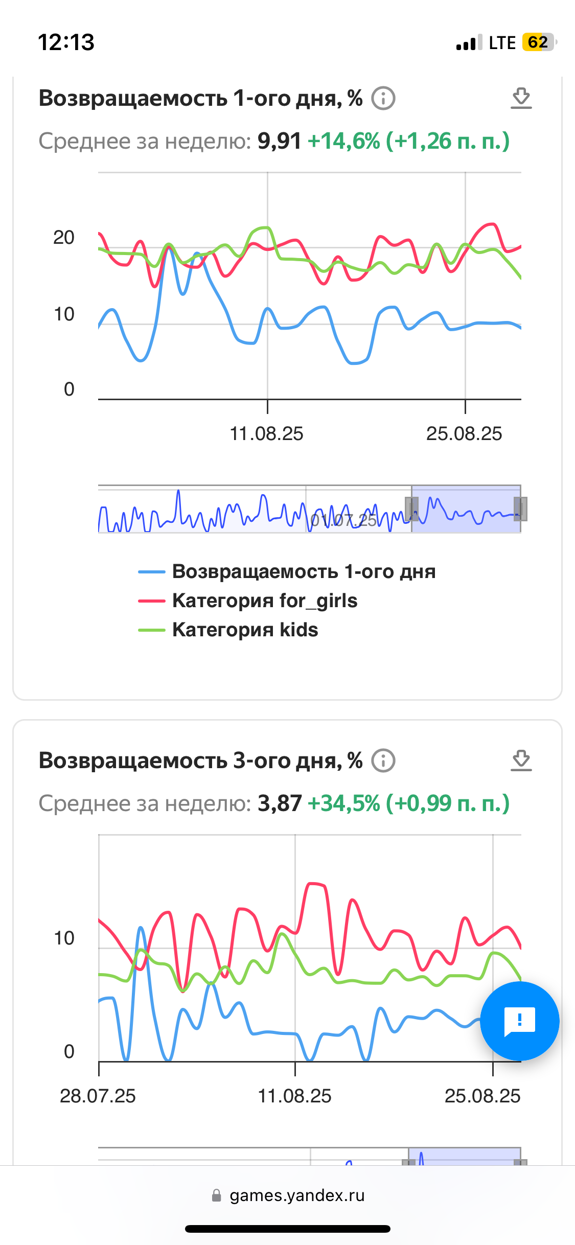 Возвращаемость 1-го дня 9,91%