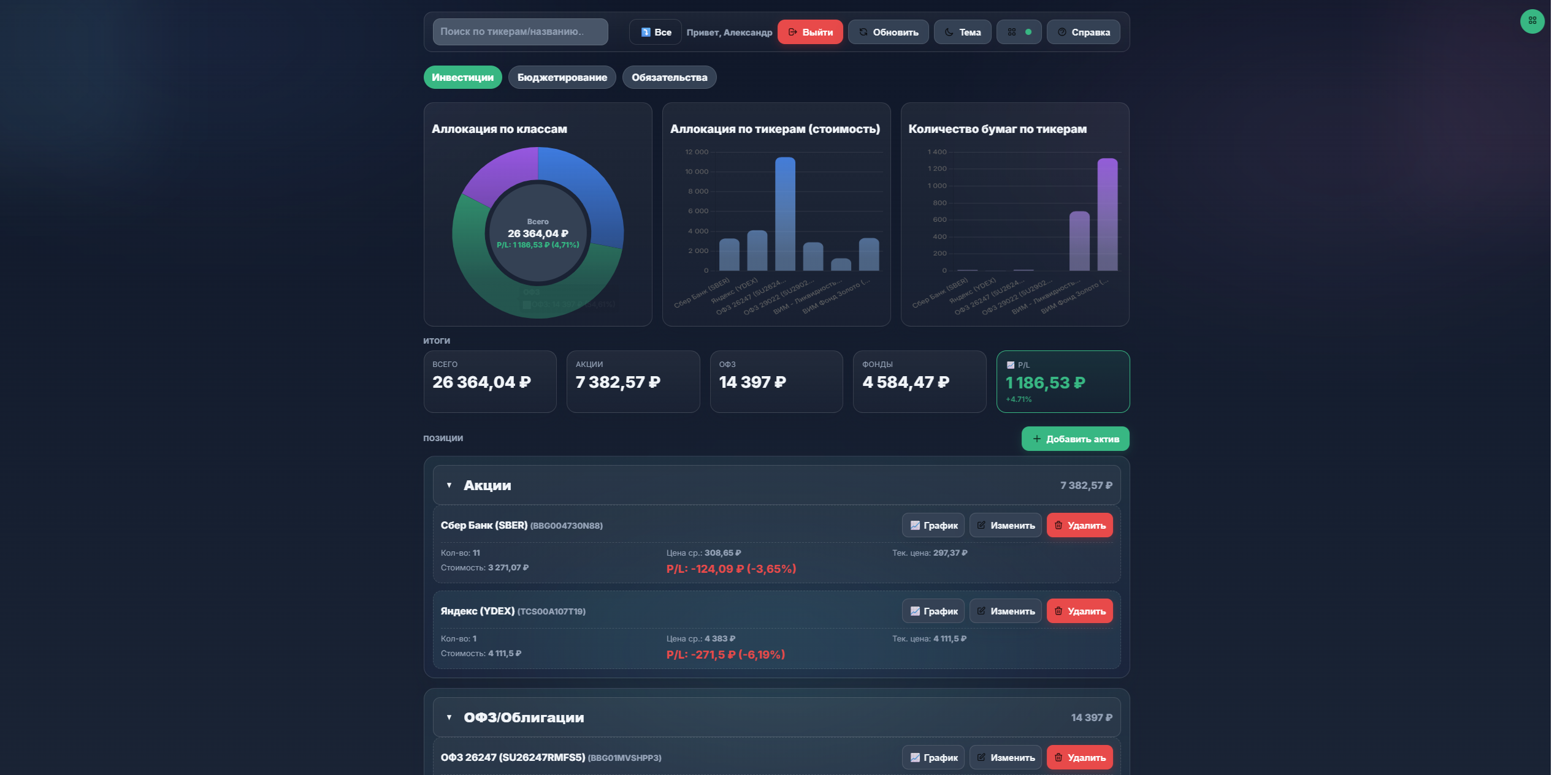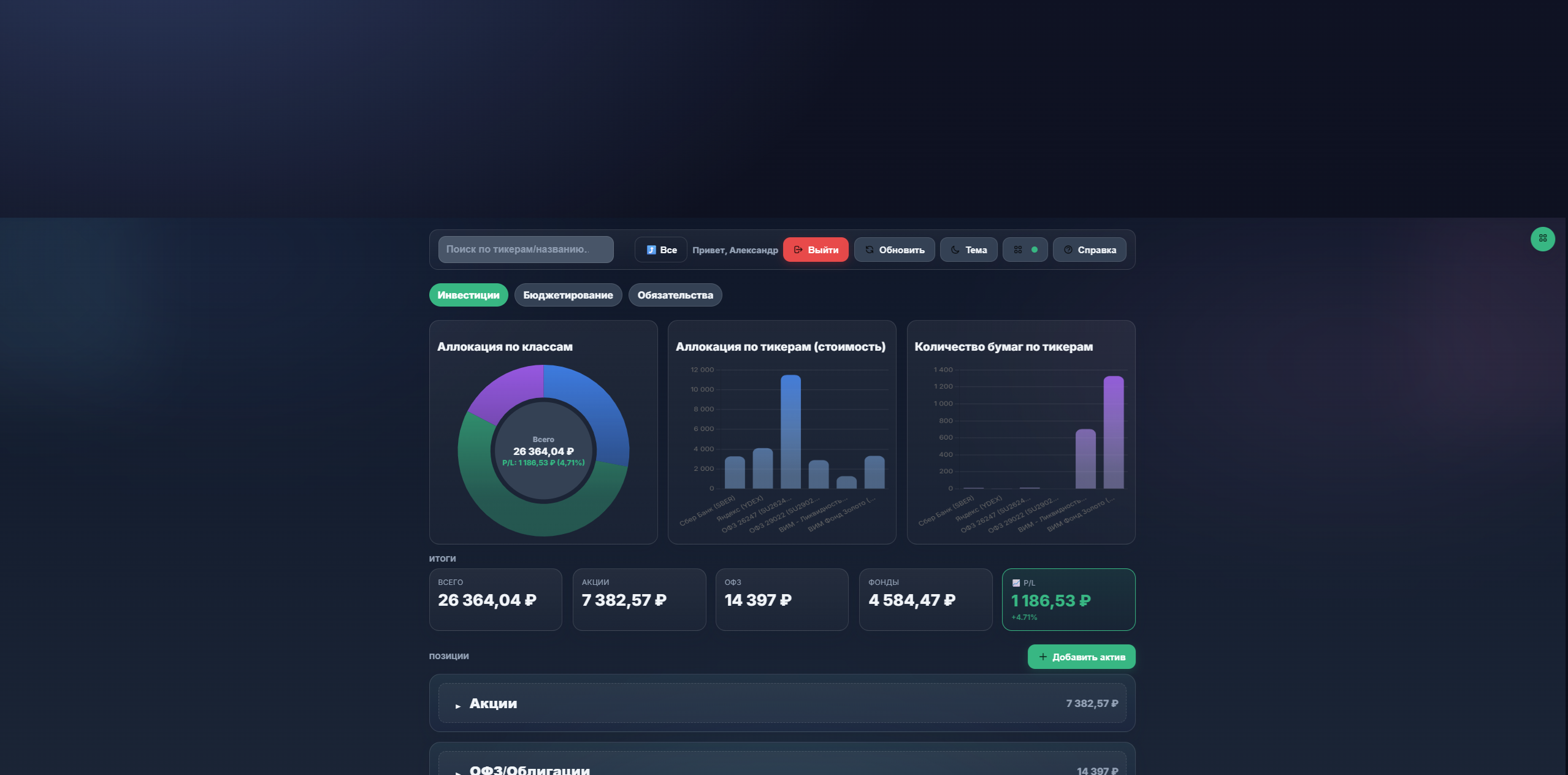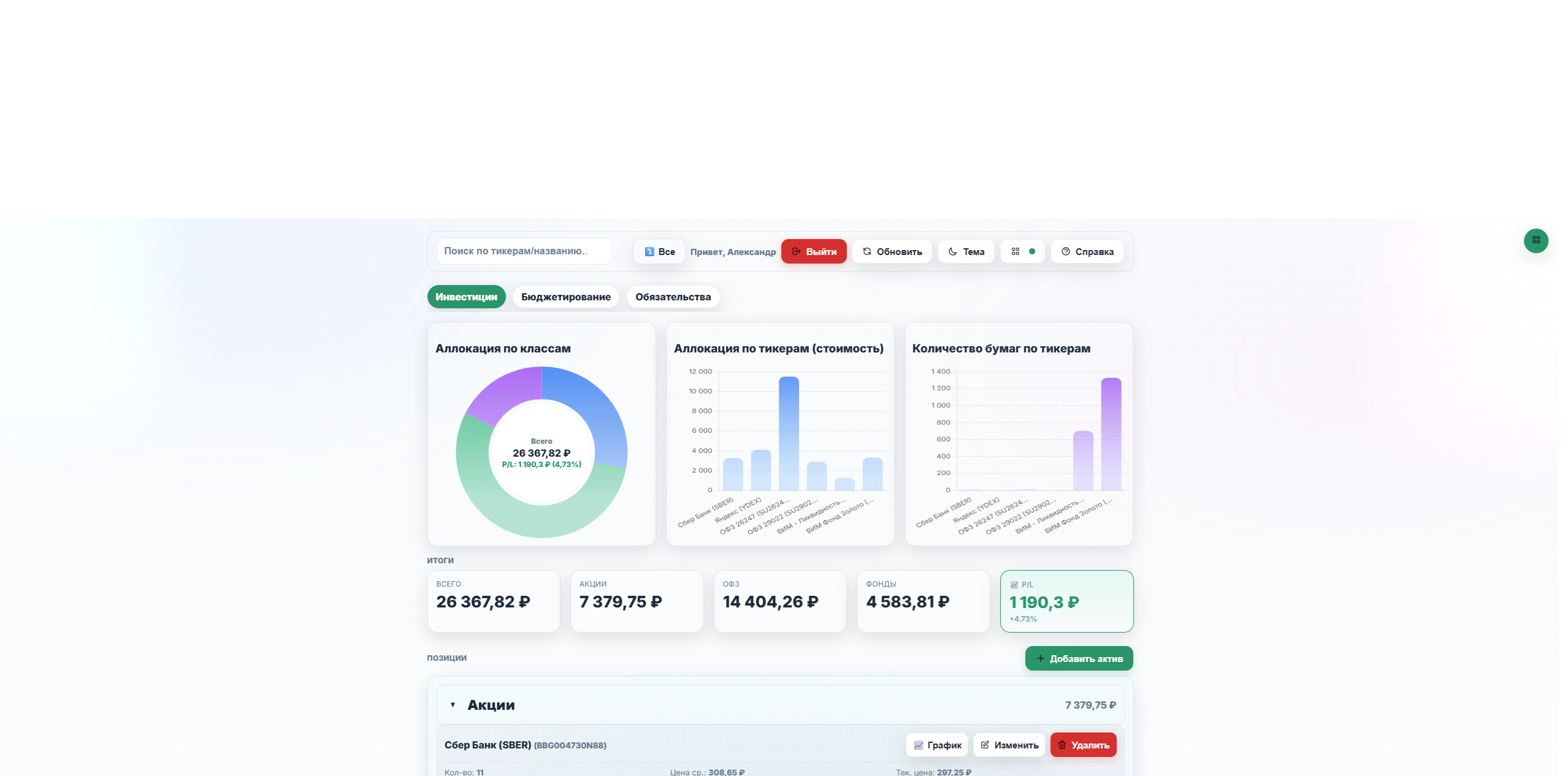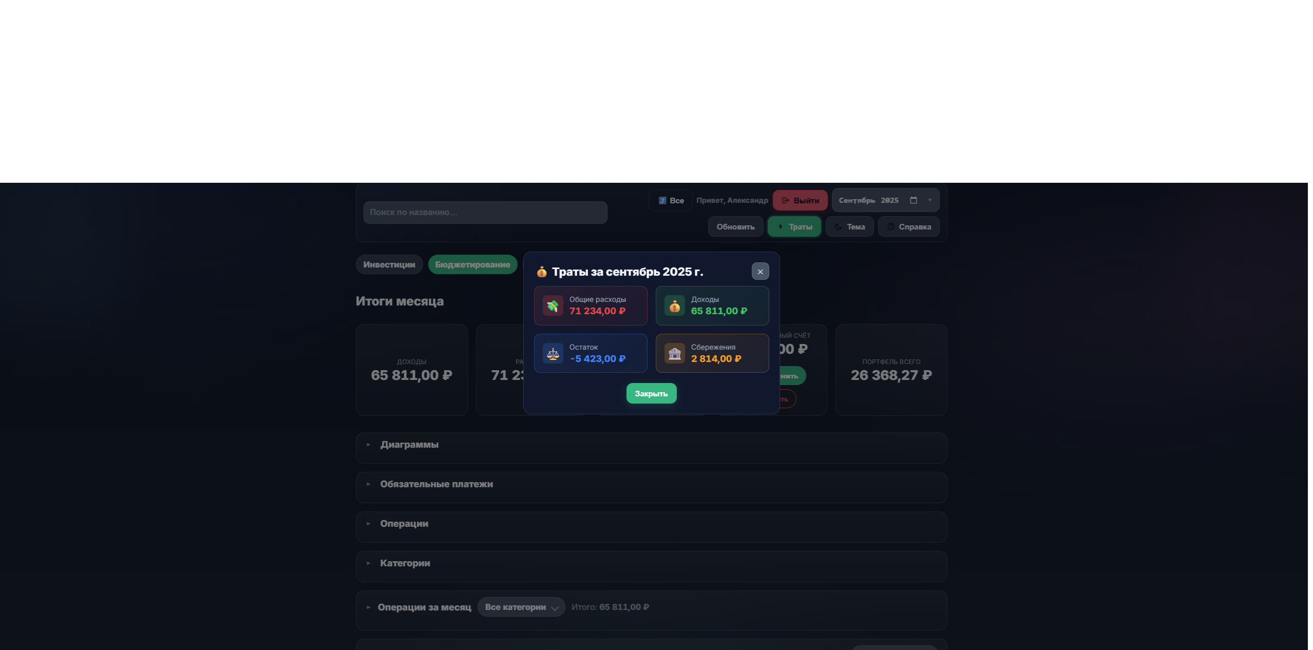 Продается готовый исходный код веб-приложения для управления личными финансами и инвестициями - FinFlow (Portfolio & Budget Management System).