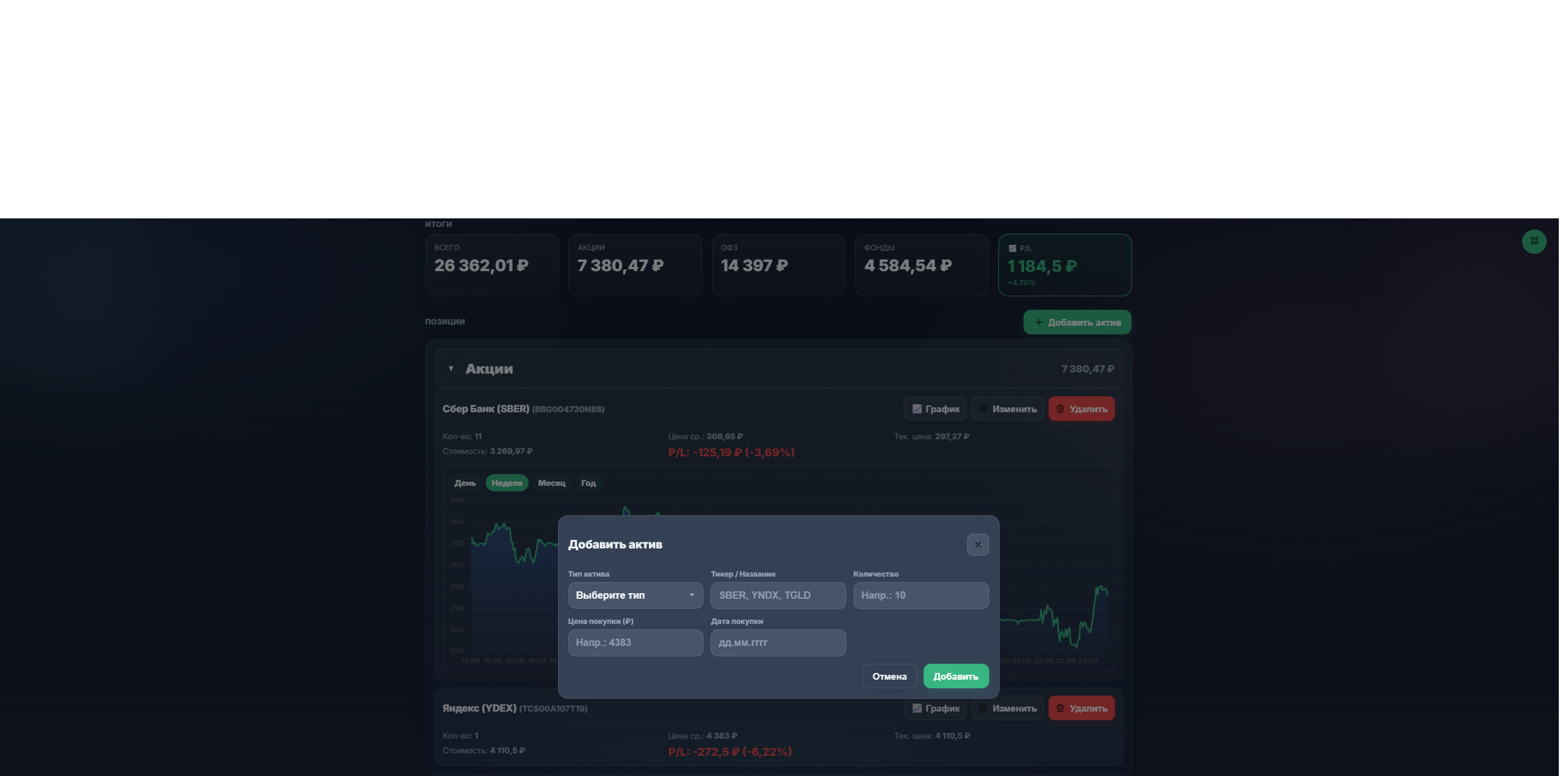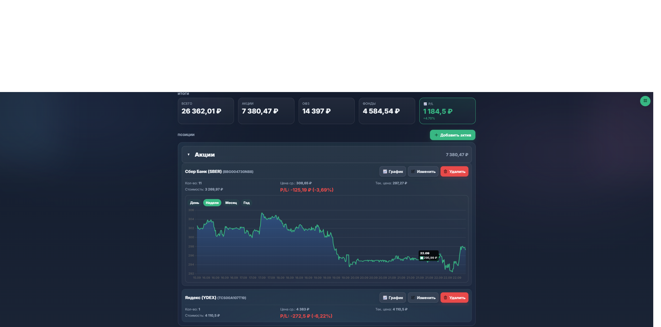 Инвестиционный модуль с интеграцией Tinkoff Invest API для автоматического получения котировок