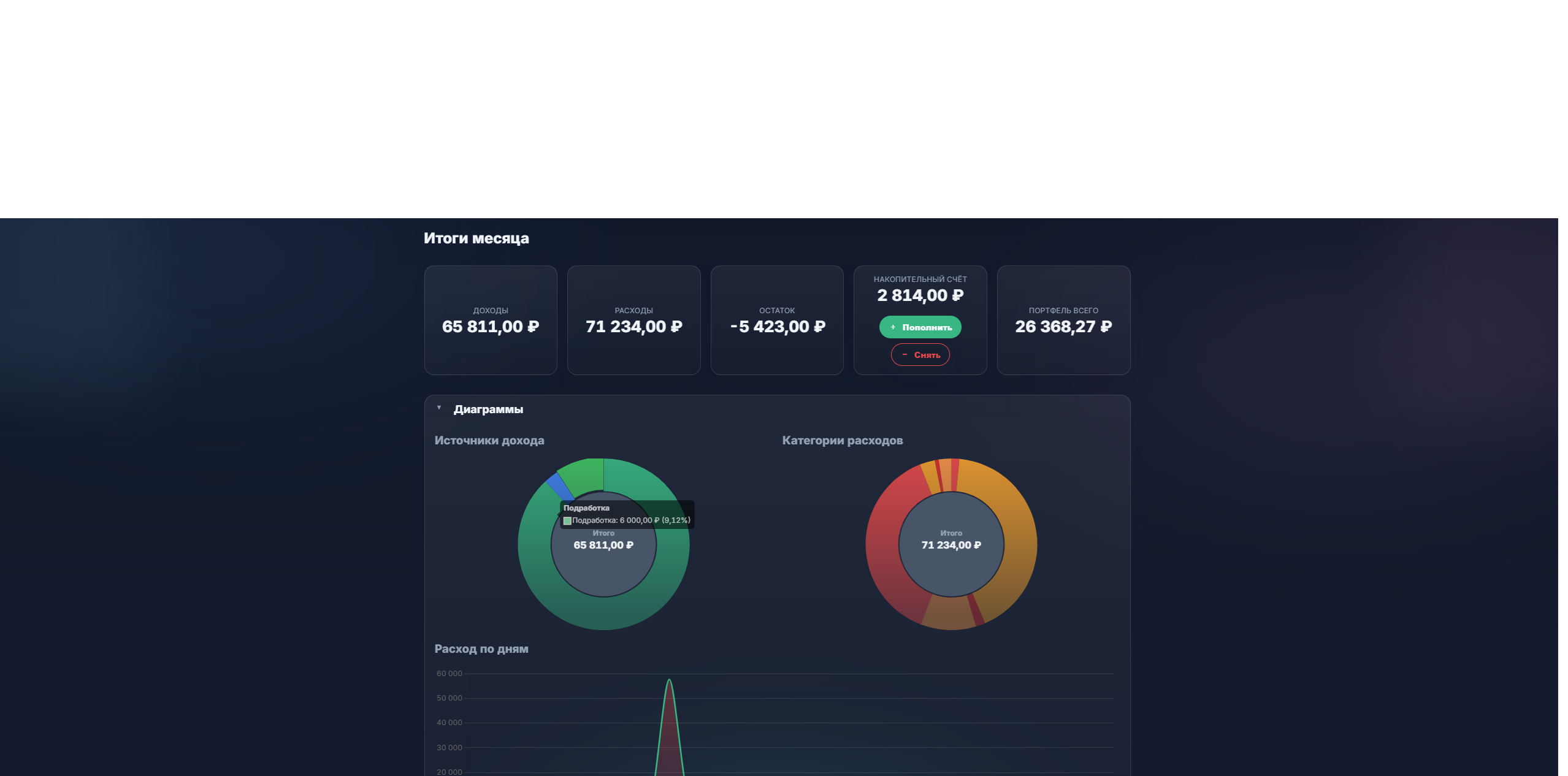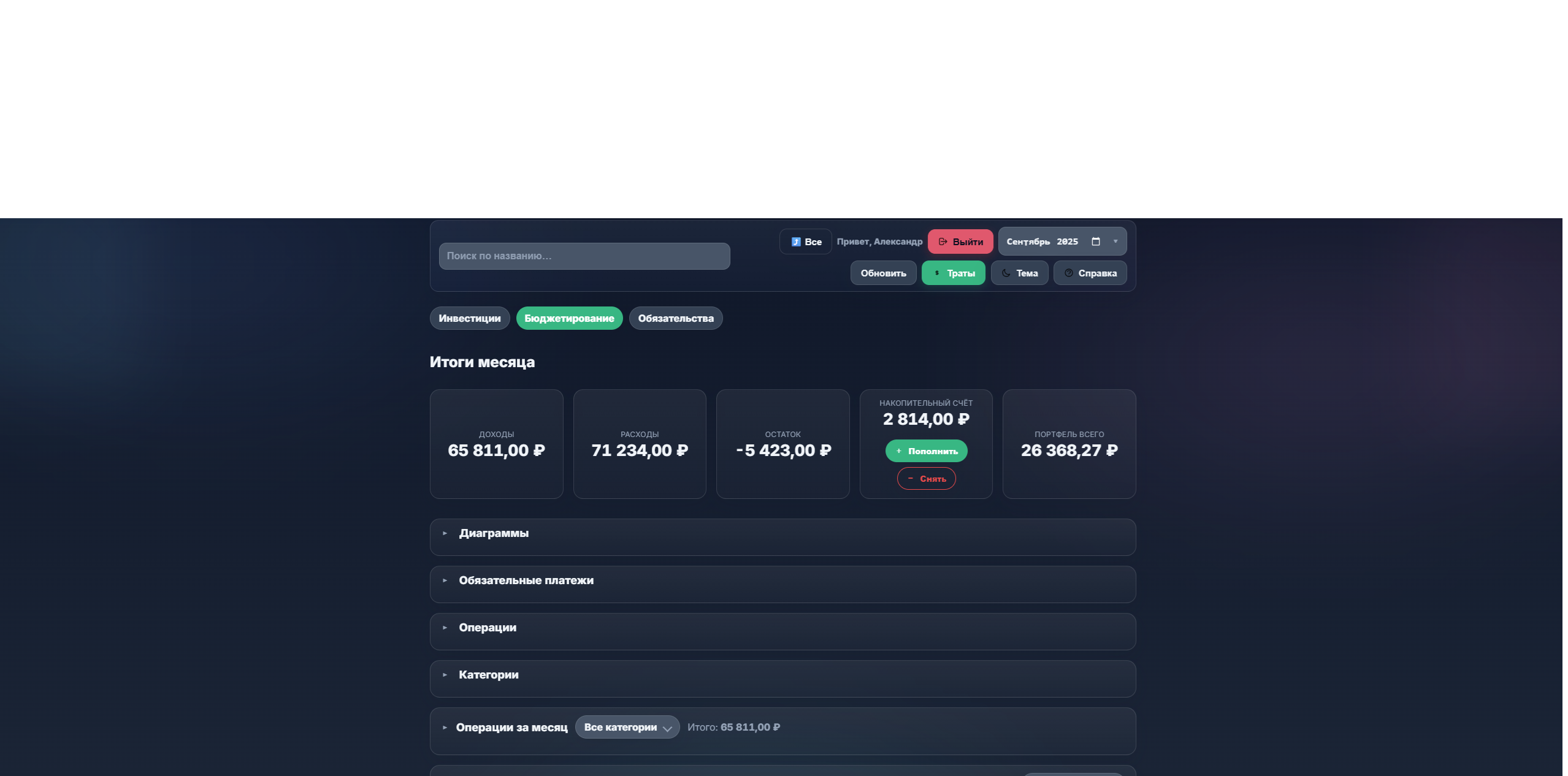 Бюджетирование: учет доходов/расходов, управление счетами, месячная аналитика