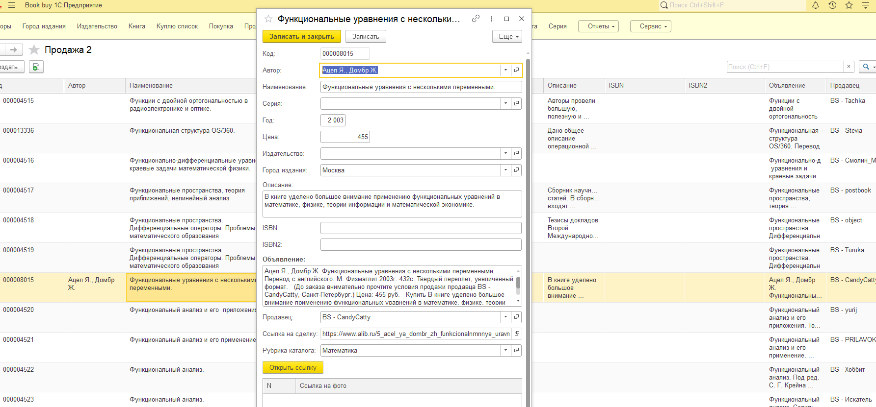 Данные (автор, издательство, серия, город, продавец) тоже распределяются по отдельным справочникам.