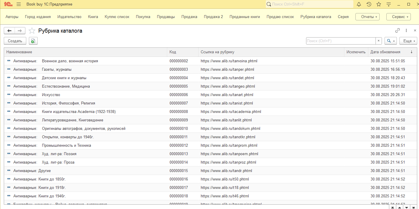 Парсер крупного книжного сайта - конфигурация 1C 8.3