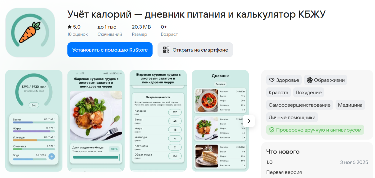 ИИ-калькулятор КБЖУ и дневник питания с фото-анализом еды.