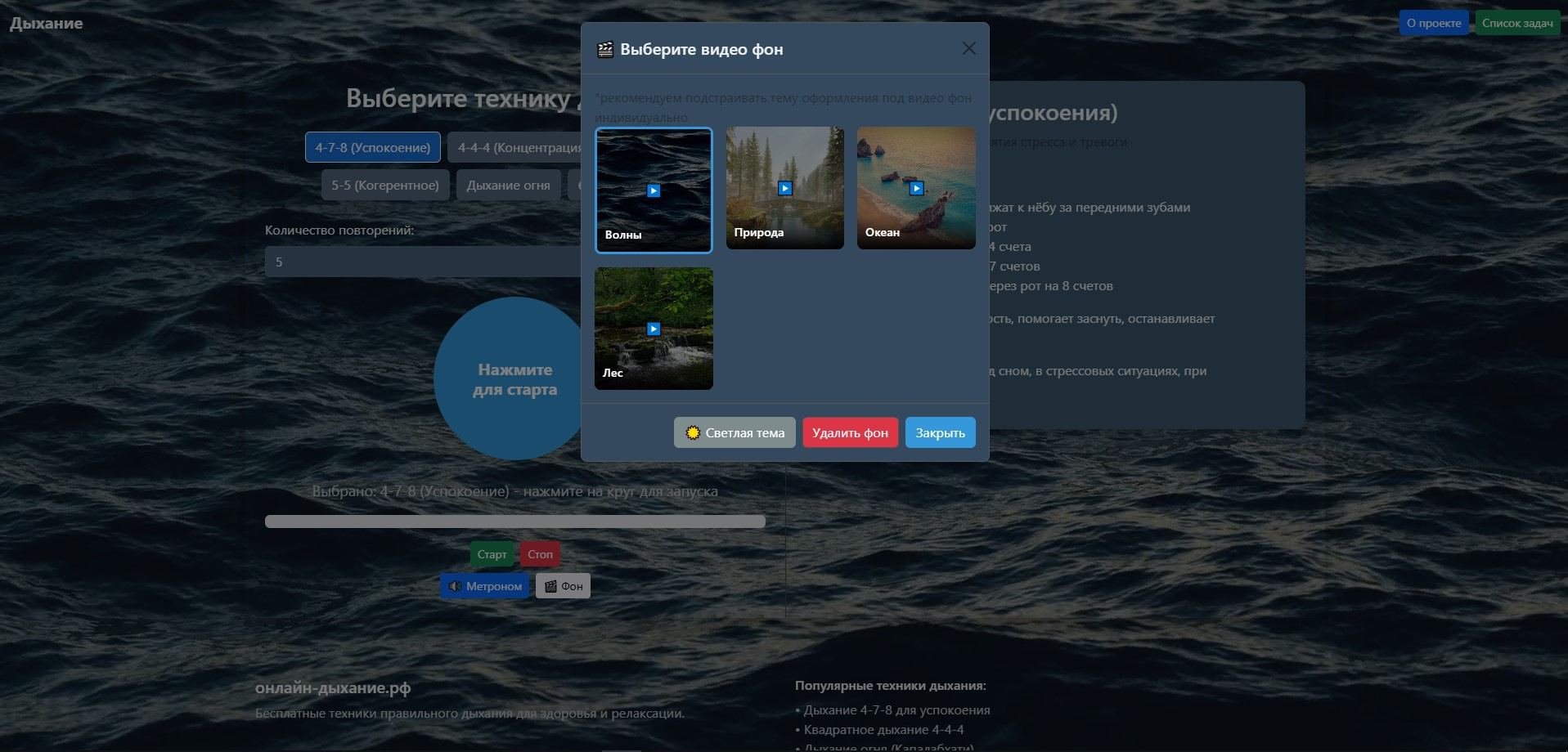 ✅ **Видео-фоны** для релаксации, метроном, темная/светлая тема