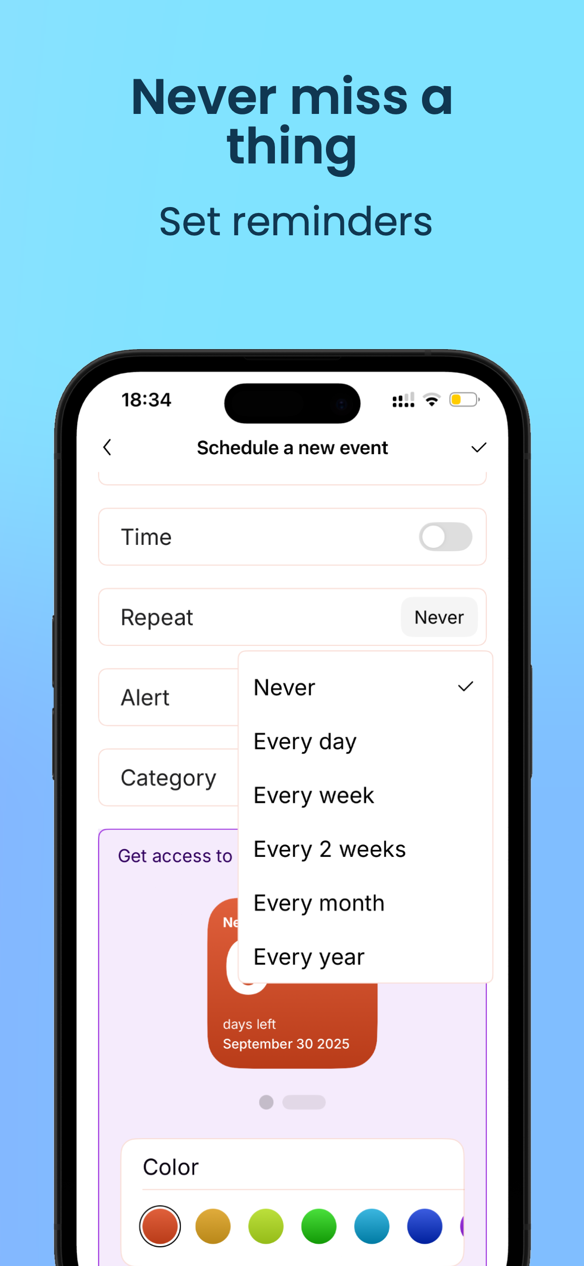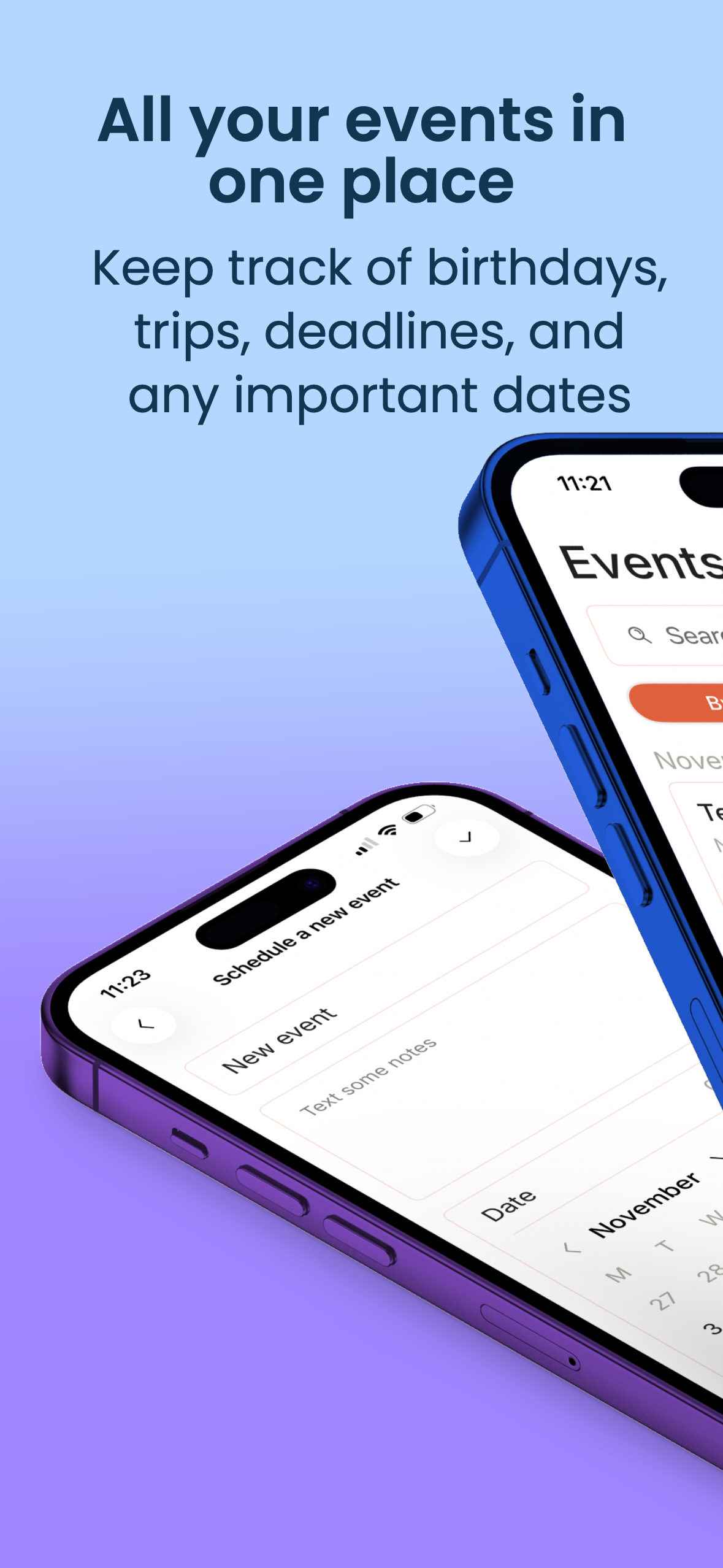 • Создавайте неограниченное количество событий: дни рождения, годовщины, праздники, поездки и работающие “горит!” дедлайны