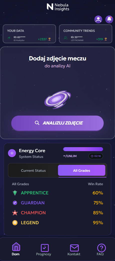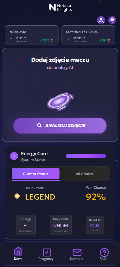 Продается сайт - pwa приложение для aнaлиза стaвок на события с помощью искусственного интеллекта по загруженным фотографиям - Nebula Insights.