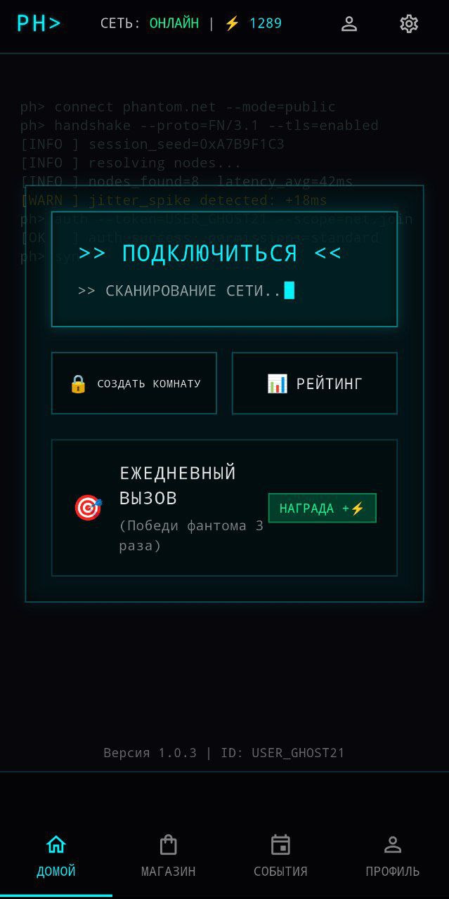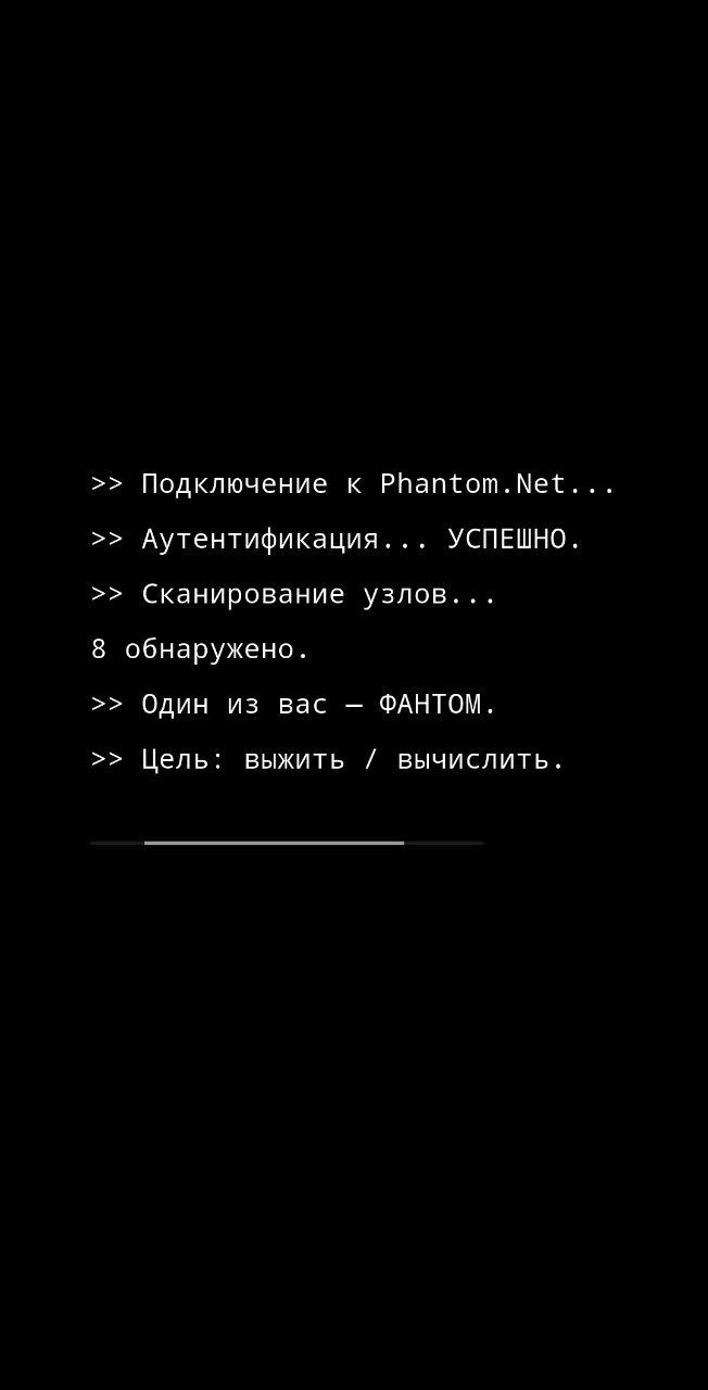 Phantom.Net — это социальная дедукционная игра нового поколения, где нет привычных ролей, подсказок и честных правил. Здесь один из игроков — Фантом. Он не просто скрывается. Он вмешивается.