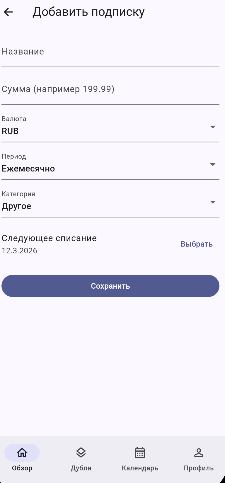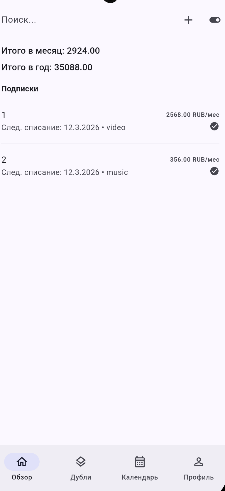 Приложение для управления подписками и экономии.