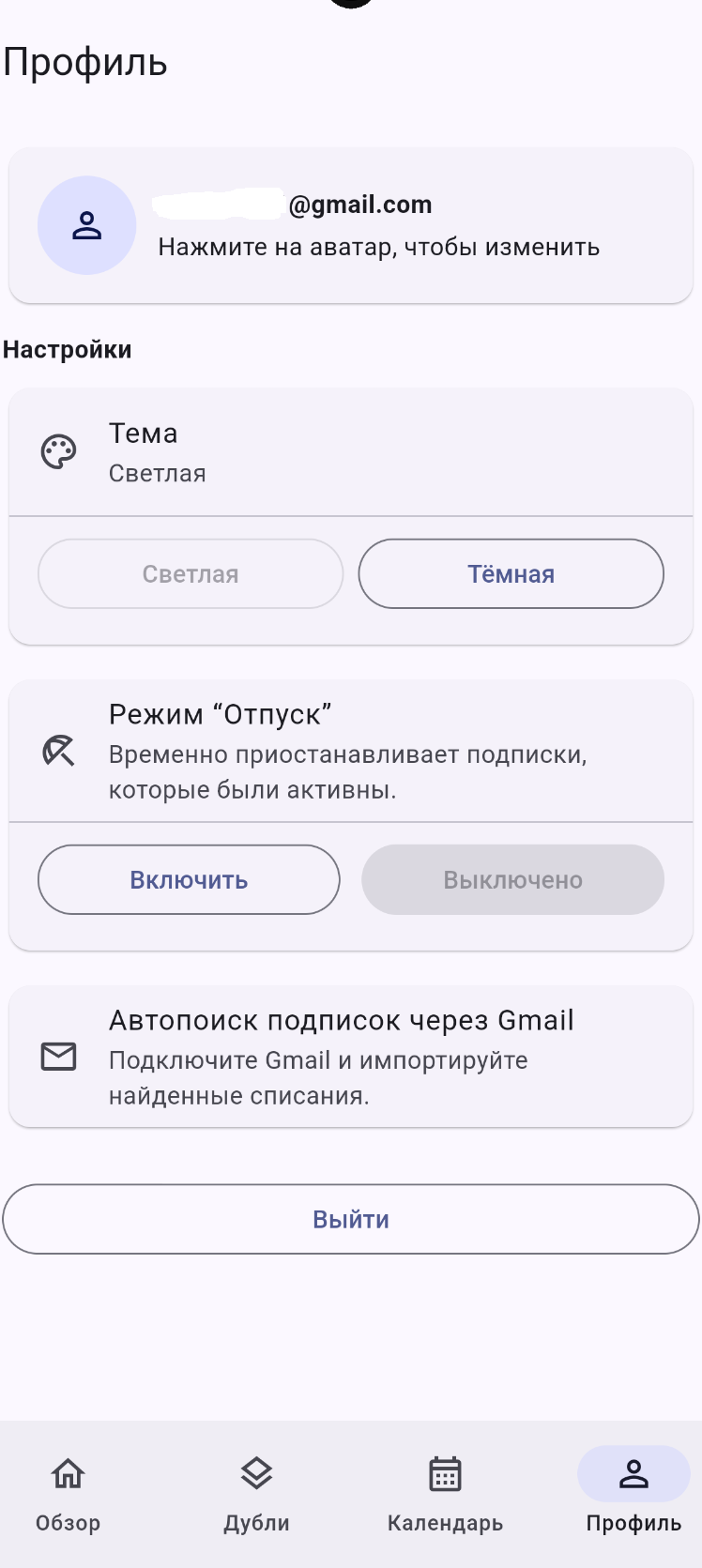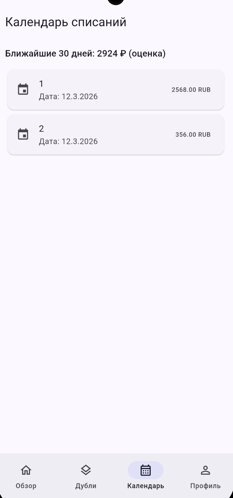 Продаю исходники и готовый MVP-продукт: мобильное приложение, которое помогает пользователям находить лишние подписки, видеть пересечения сервисов, замораживать расходы на время отпуска и импортировать подписки из Gmail.