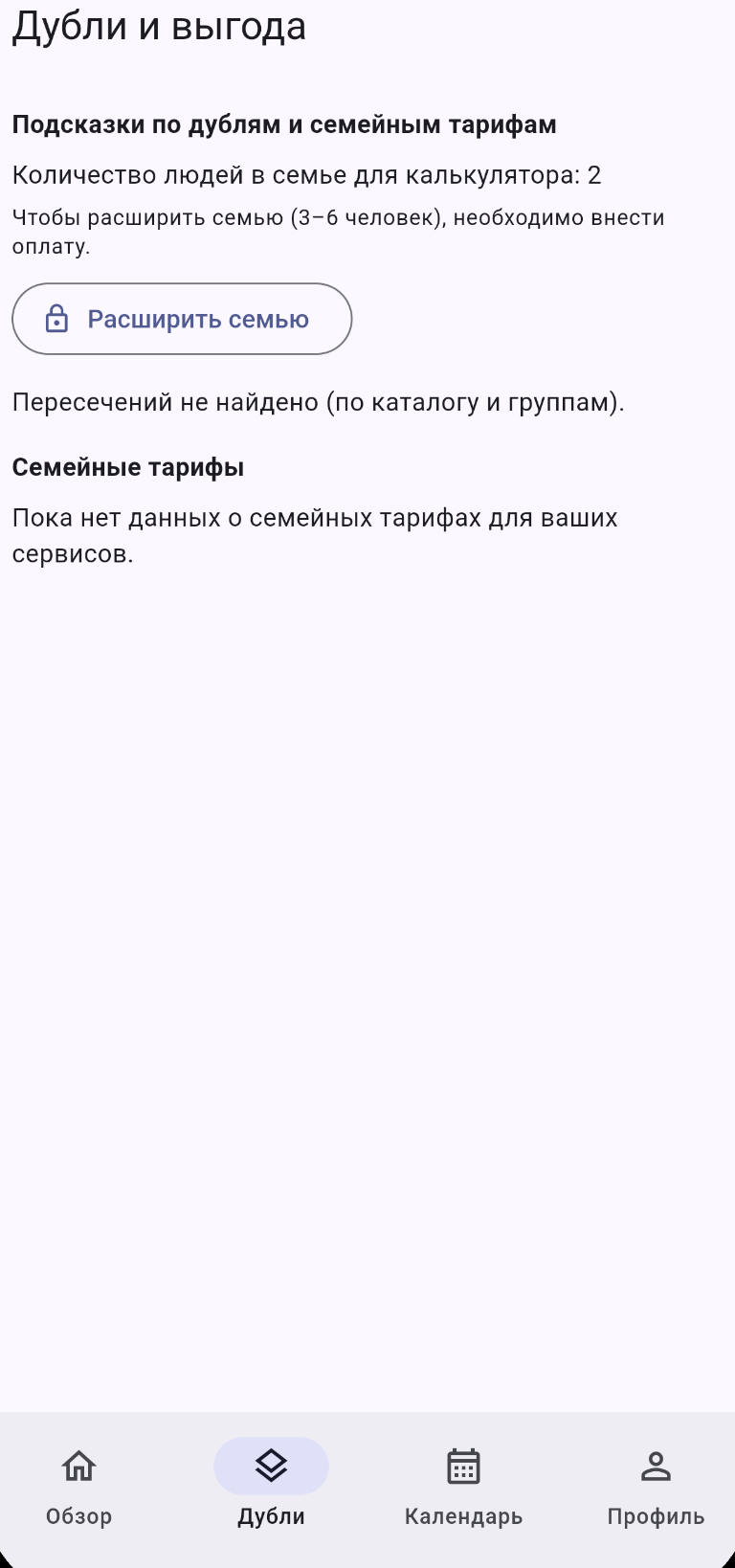 подсказки по экономии на основе подписок пользователя