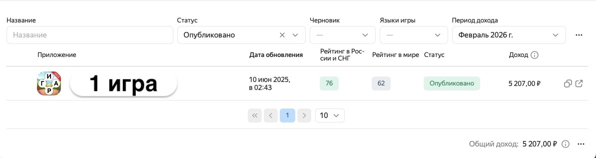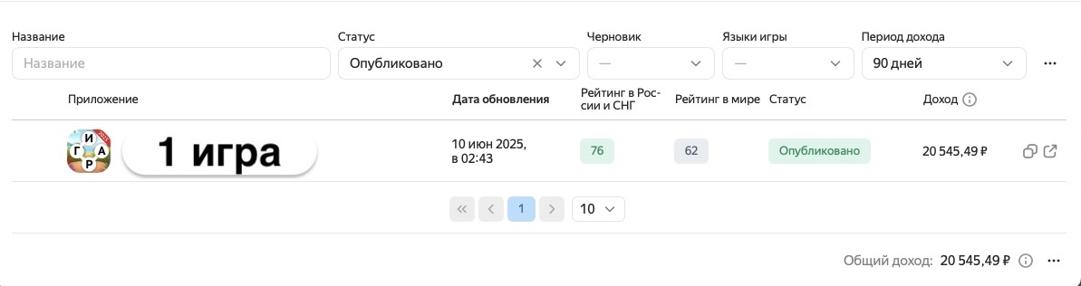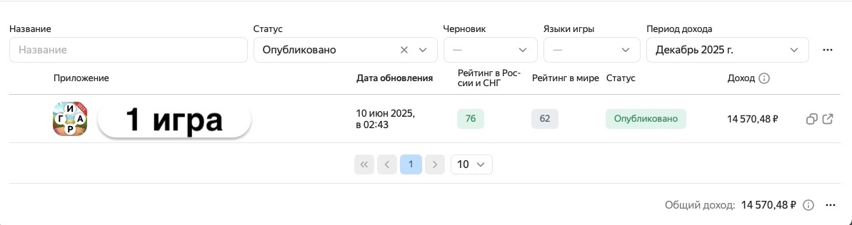 К продаже предлагается 1 игра с доходом на платформе Яндекс.Игры