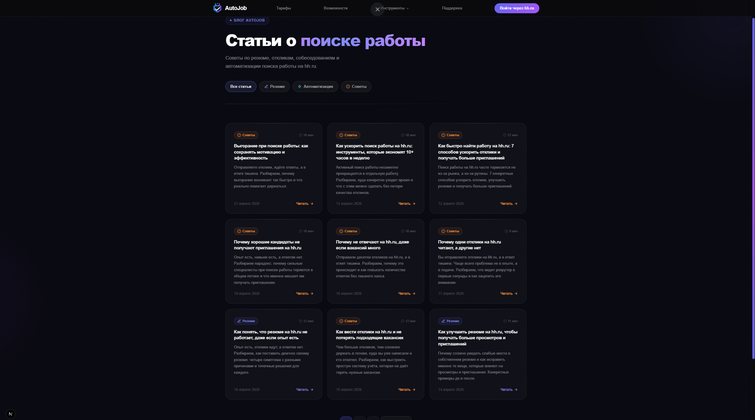 Сервис для автоматизации поиска работы на hh.ru, автоподбора вакансий, автоотклик с ИИ сопроводительными письмами и др.