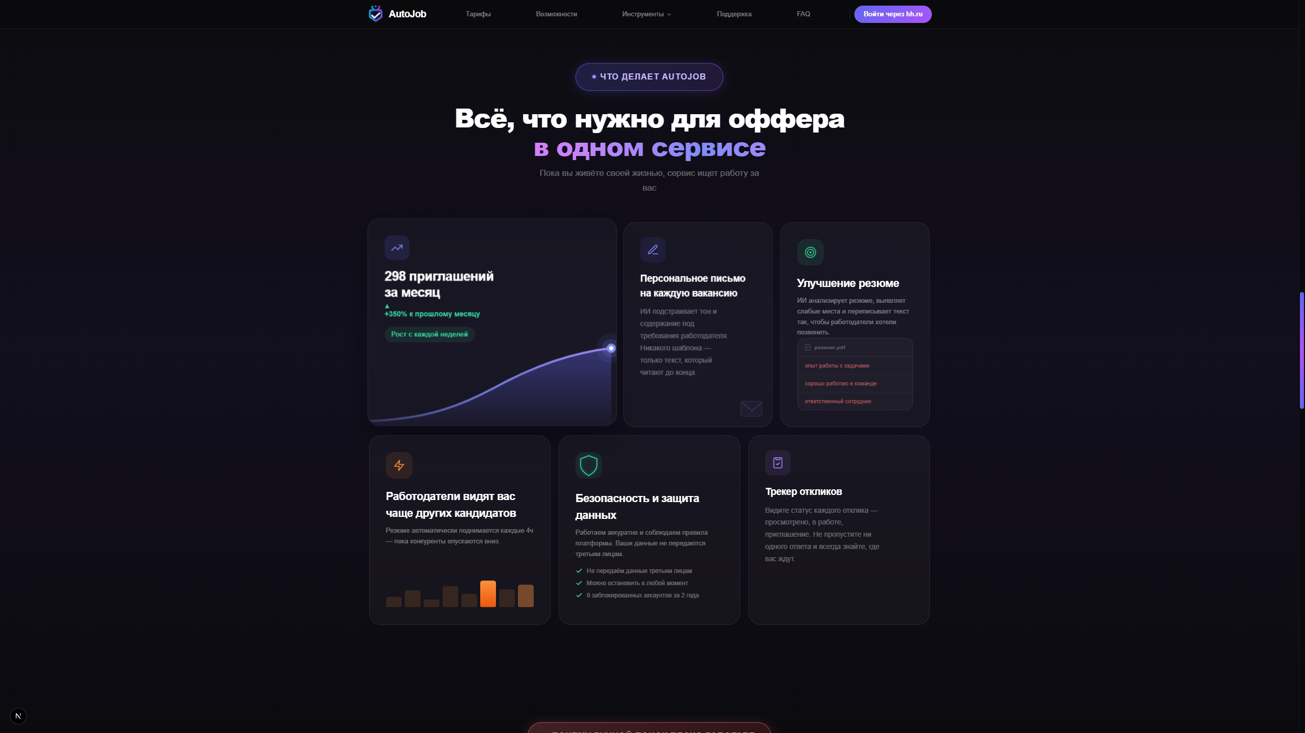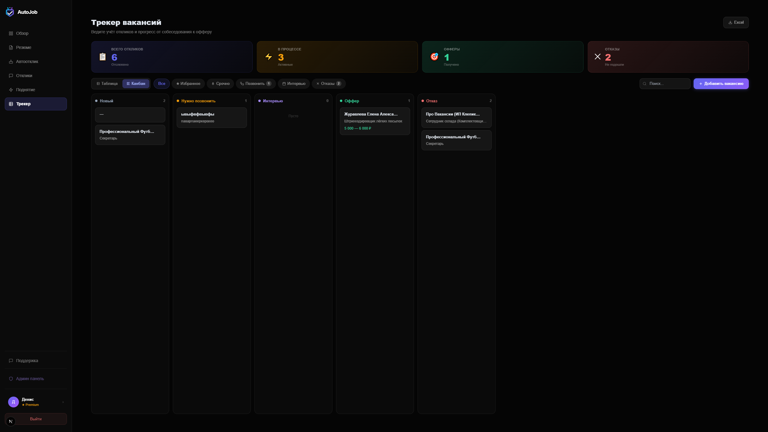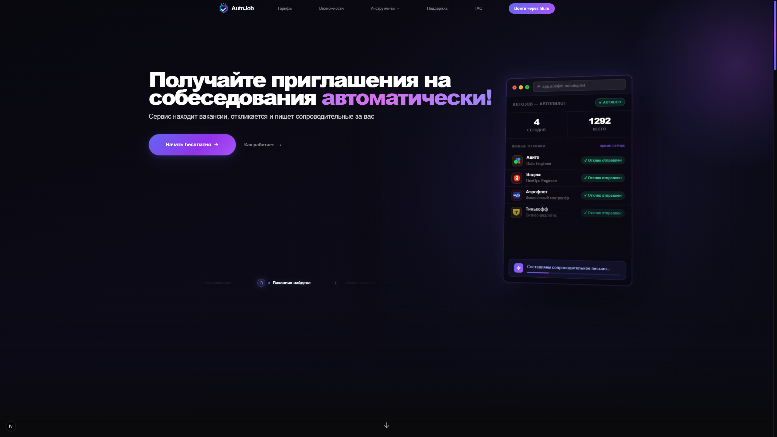 -Автоматические отклики на вакансии с сопроводительными письмами сгенерированными под каждую вакансию,