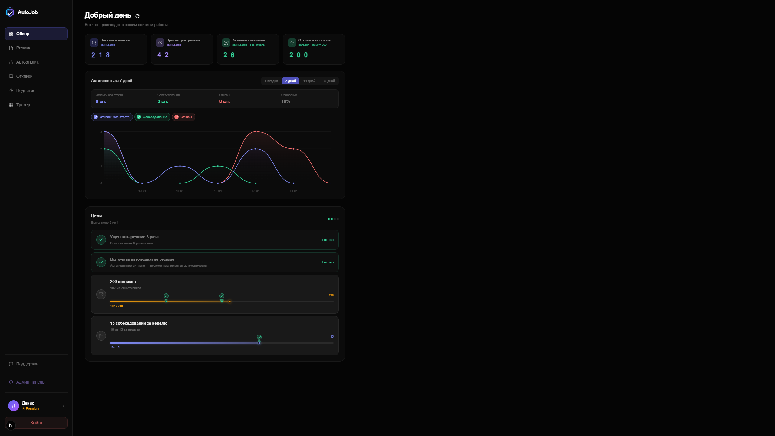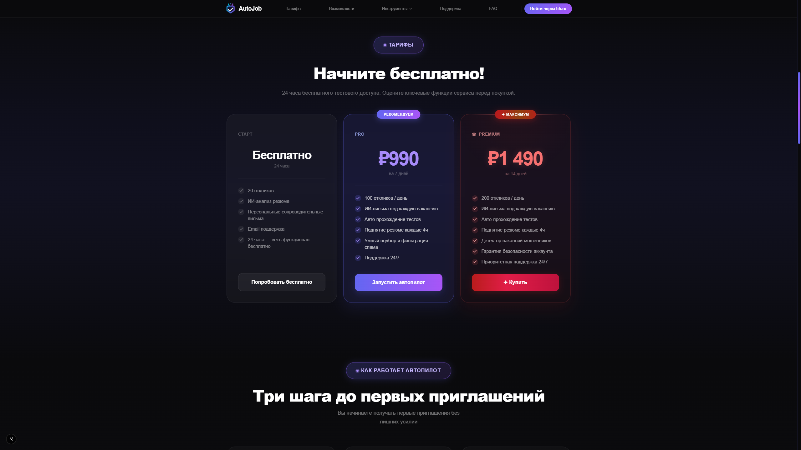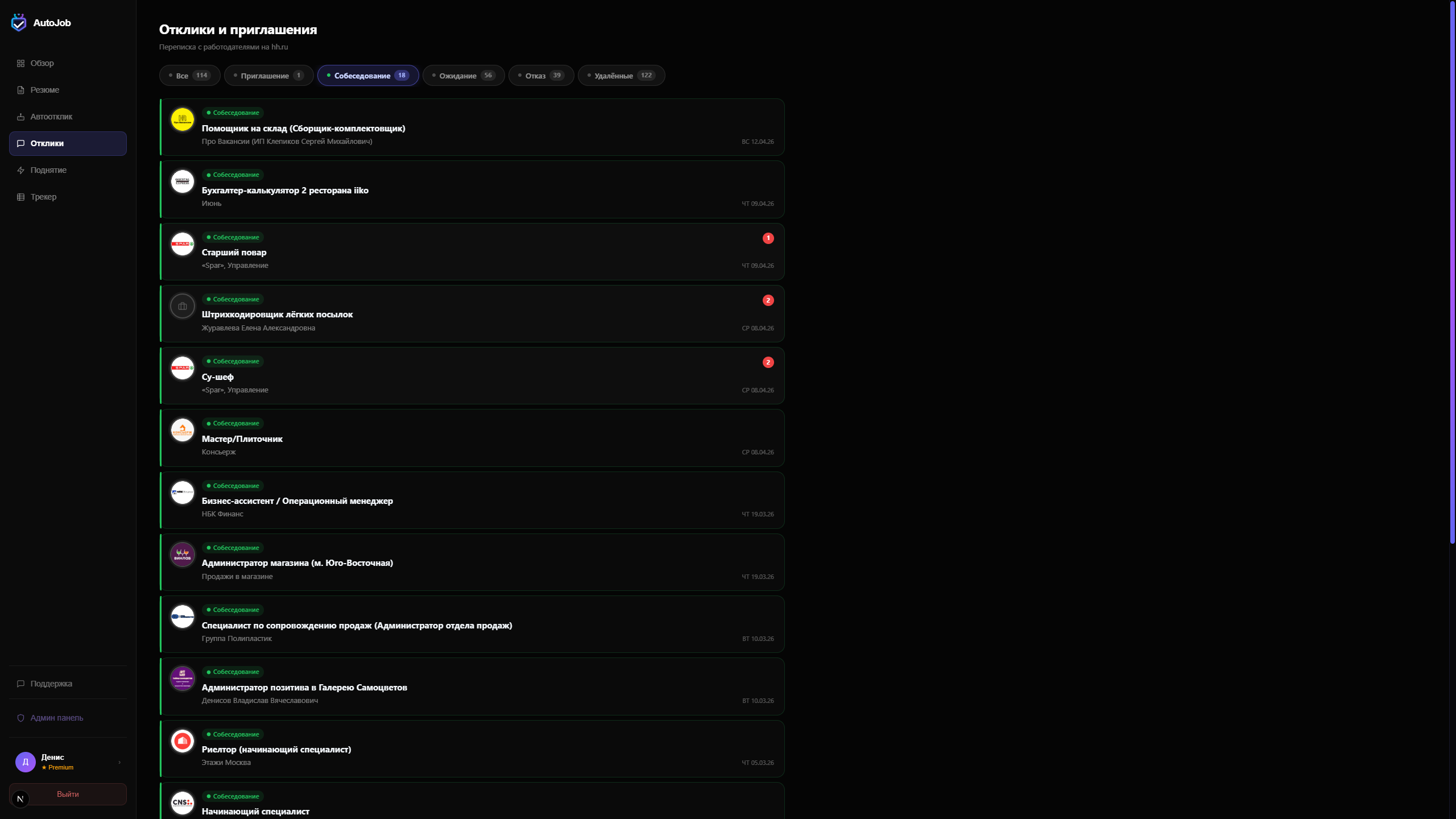 -Автоматические отклики на вакансии с сопроводительными письмами сгенерированными под каждую вакансию,