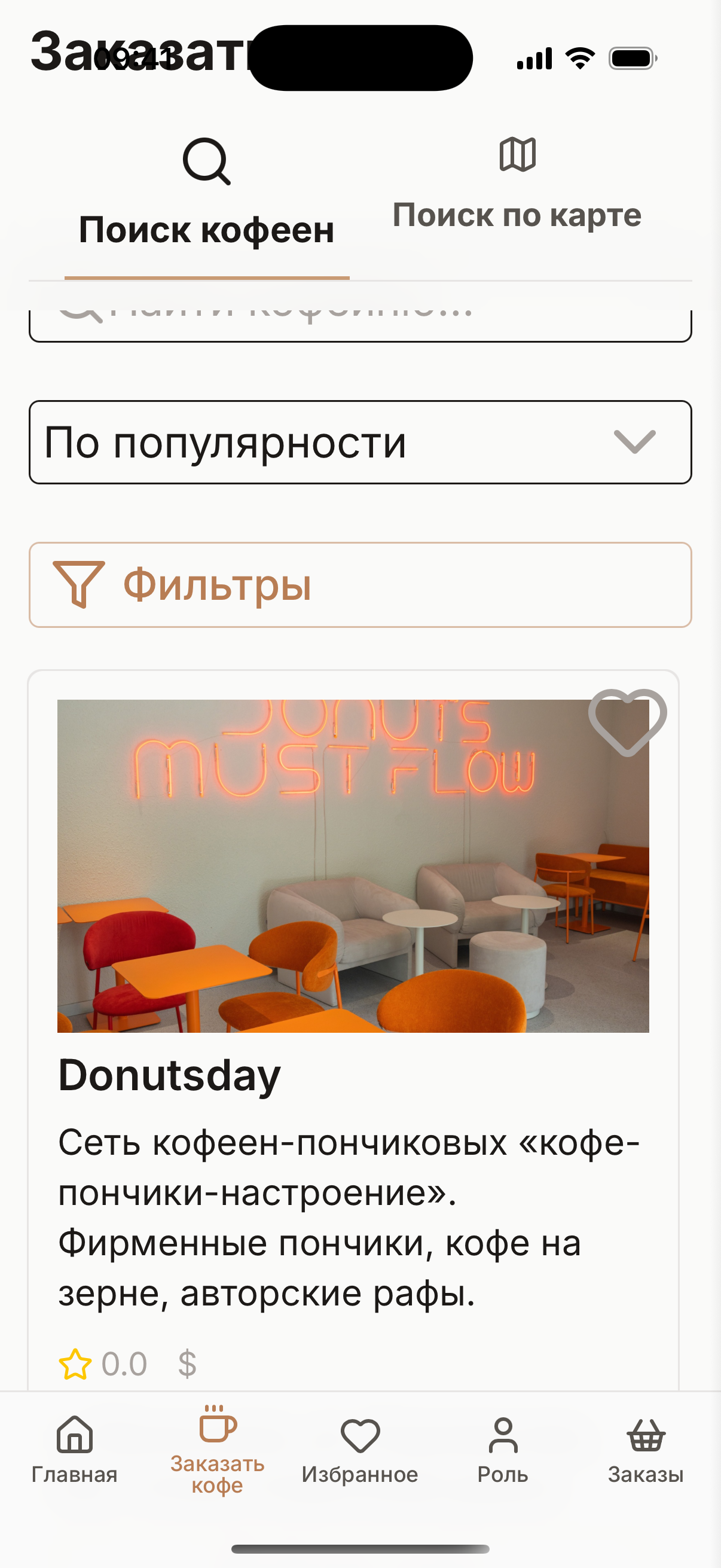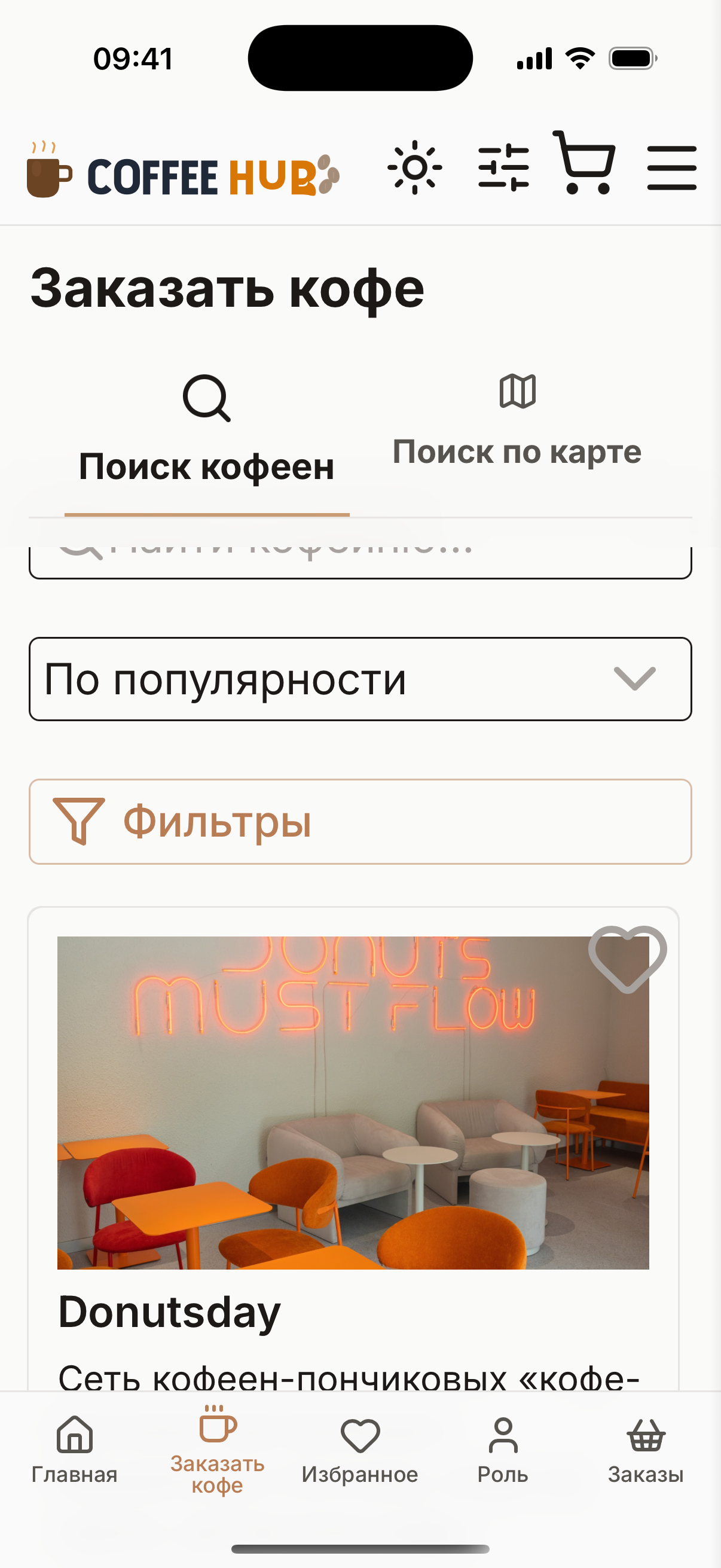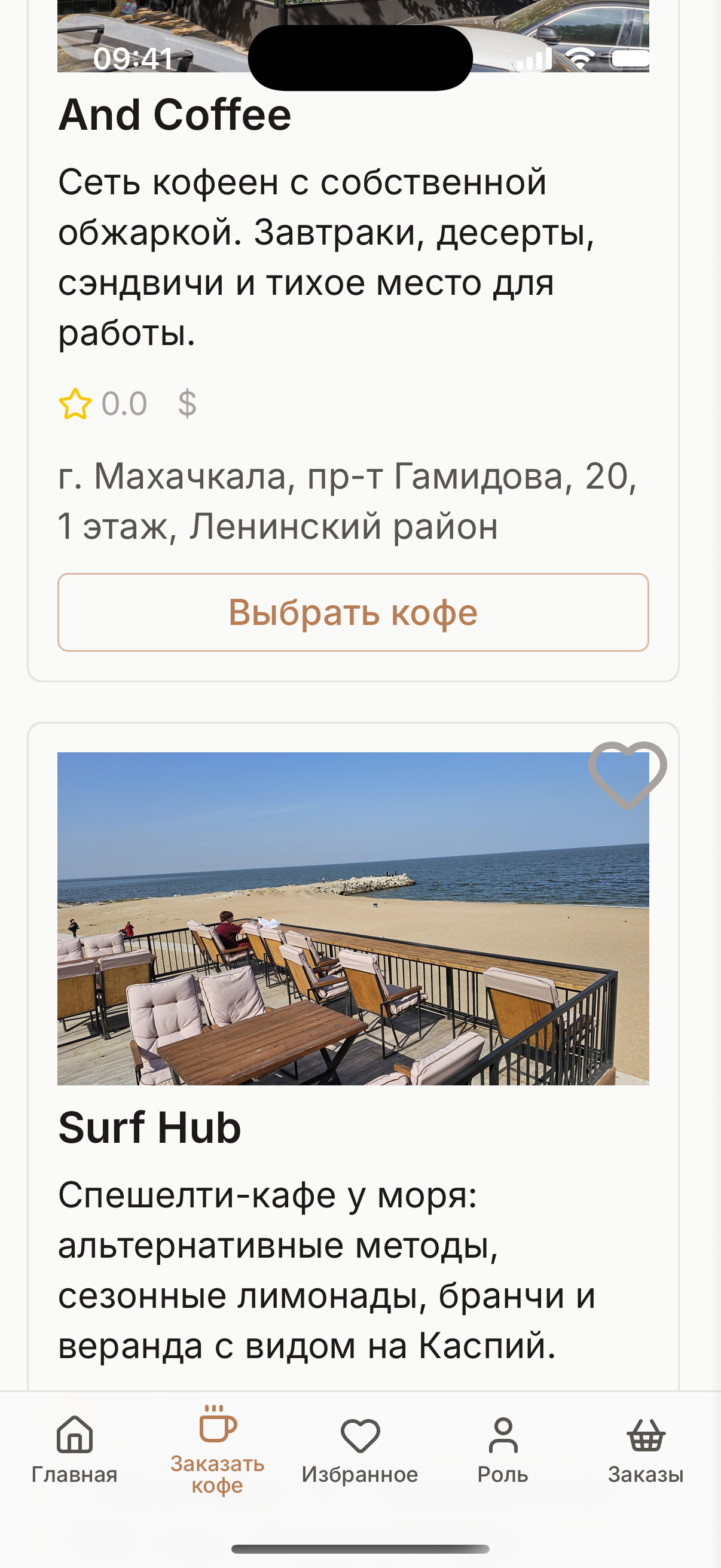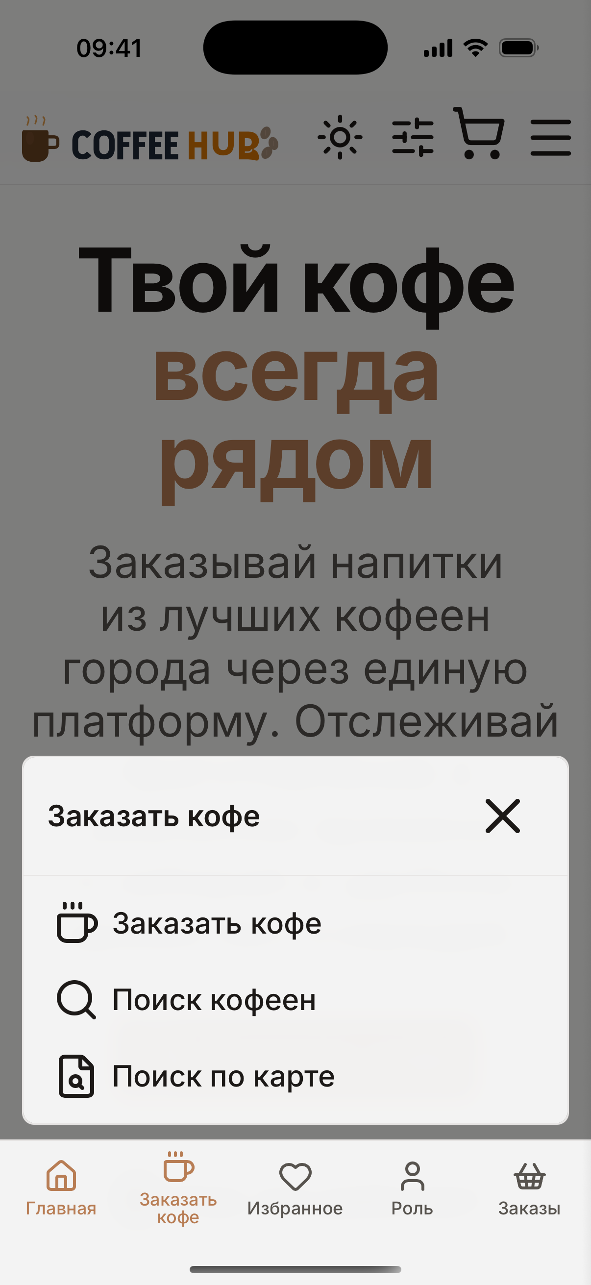 Coffee Hub — трёхсторонний B2C-агрегатор кофеен для клиентов, бариста и владельцев. С одного аккаунта пользователь может быть клиентом (заказывает кофе), бариста (принимает заказы) и владельцем (видит аналитику своей сети). Запущен в конце 2025 года, за 4 месяца доведён до публикации во всех трёх российских сторах. Работает в 8 городах Северного Кавказа: Махачкала, Дербент, Каспийск, Буйнакск, Хасавюрт, Кизляр, Грозный, Владикавказ.