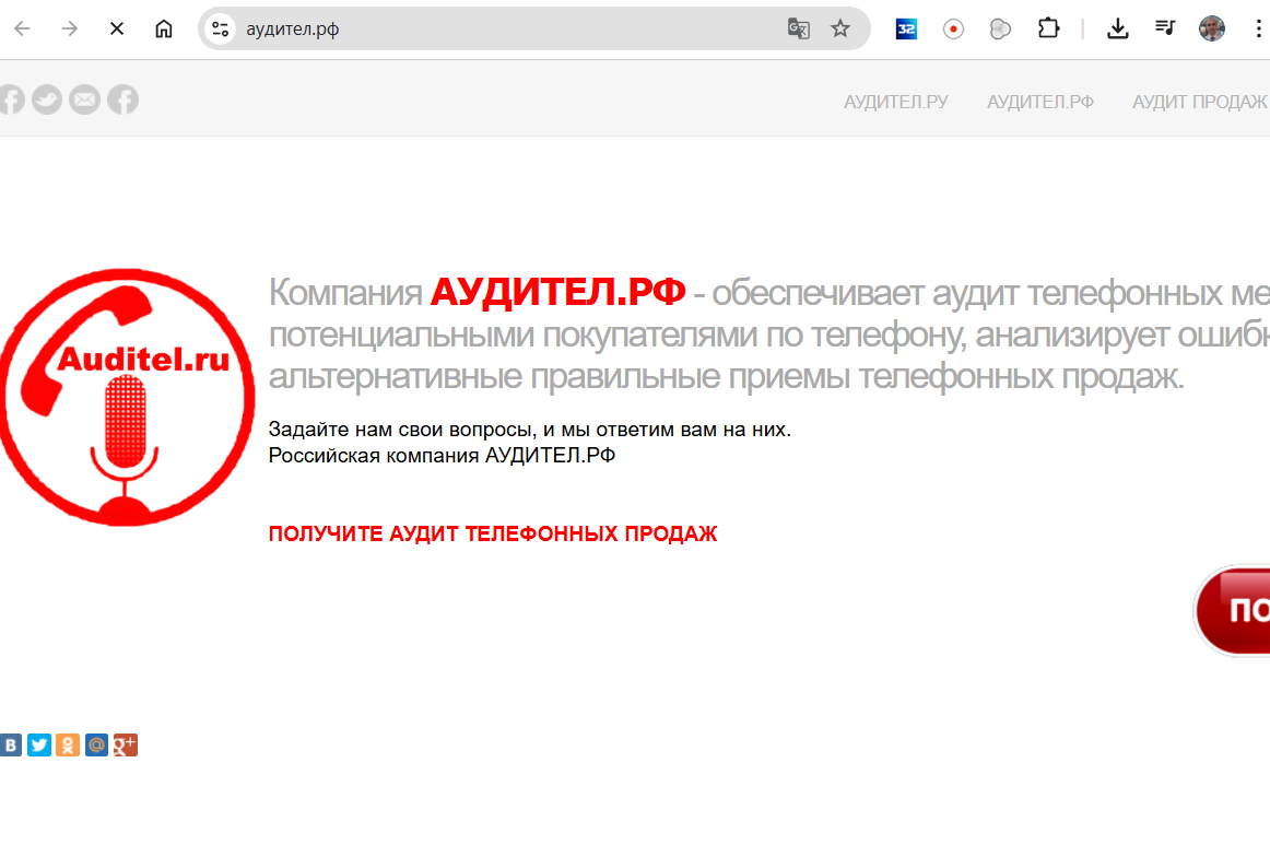 Домен АУДИТЕЛ.РФ приведёт клиентов на услуги финансового аудита, аудита телефонных продаж, услуг аудита других сфер.
