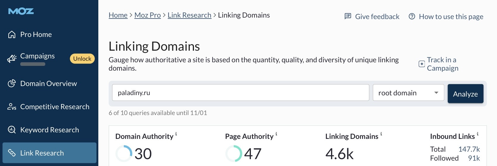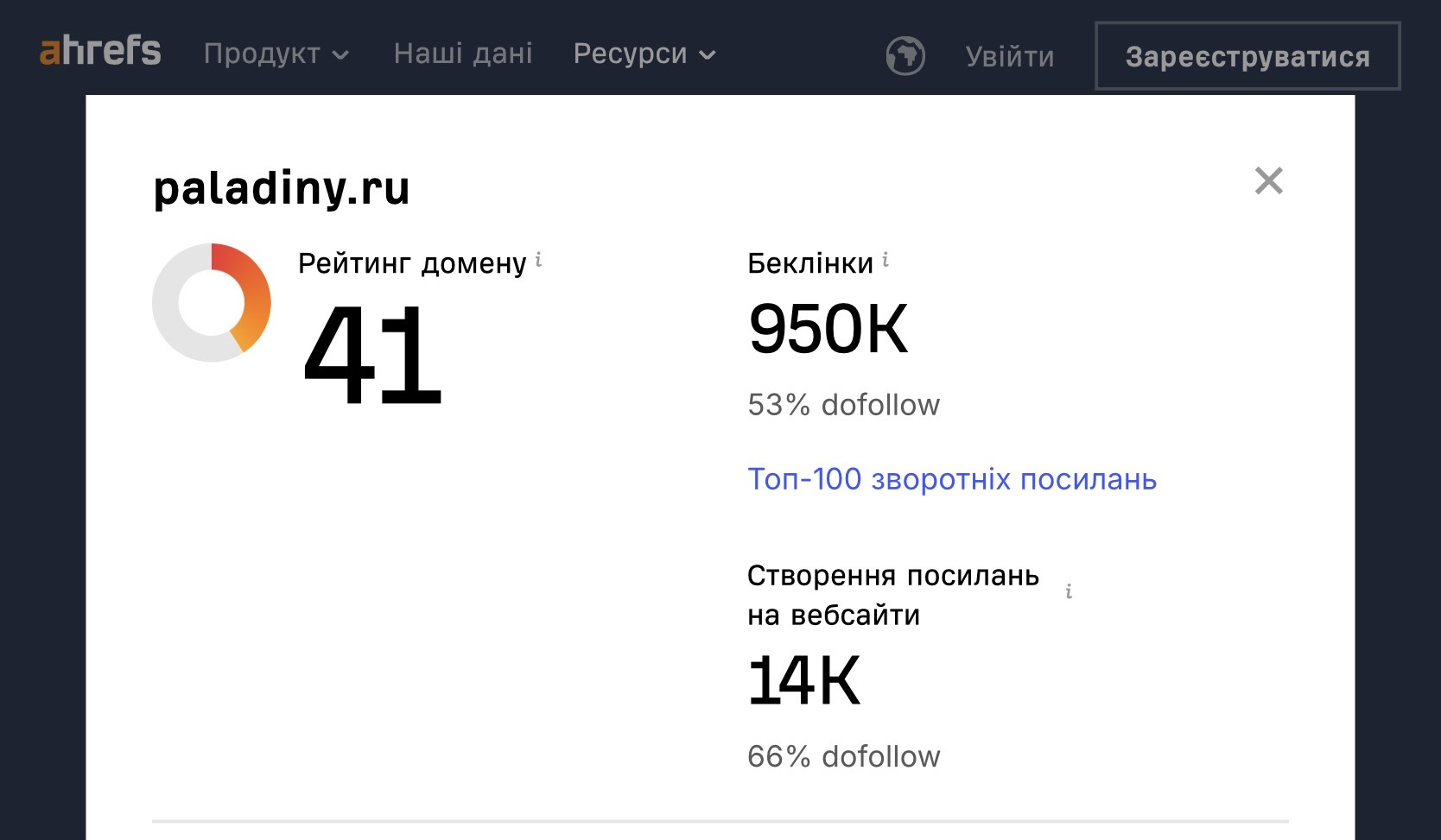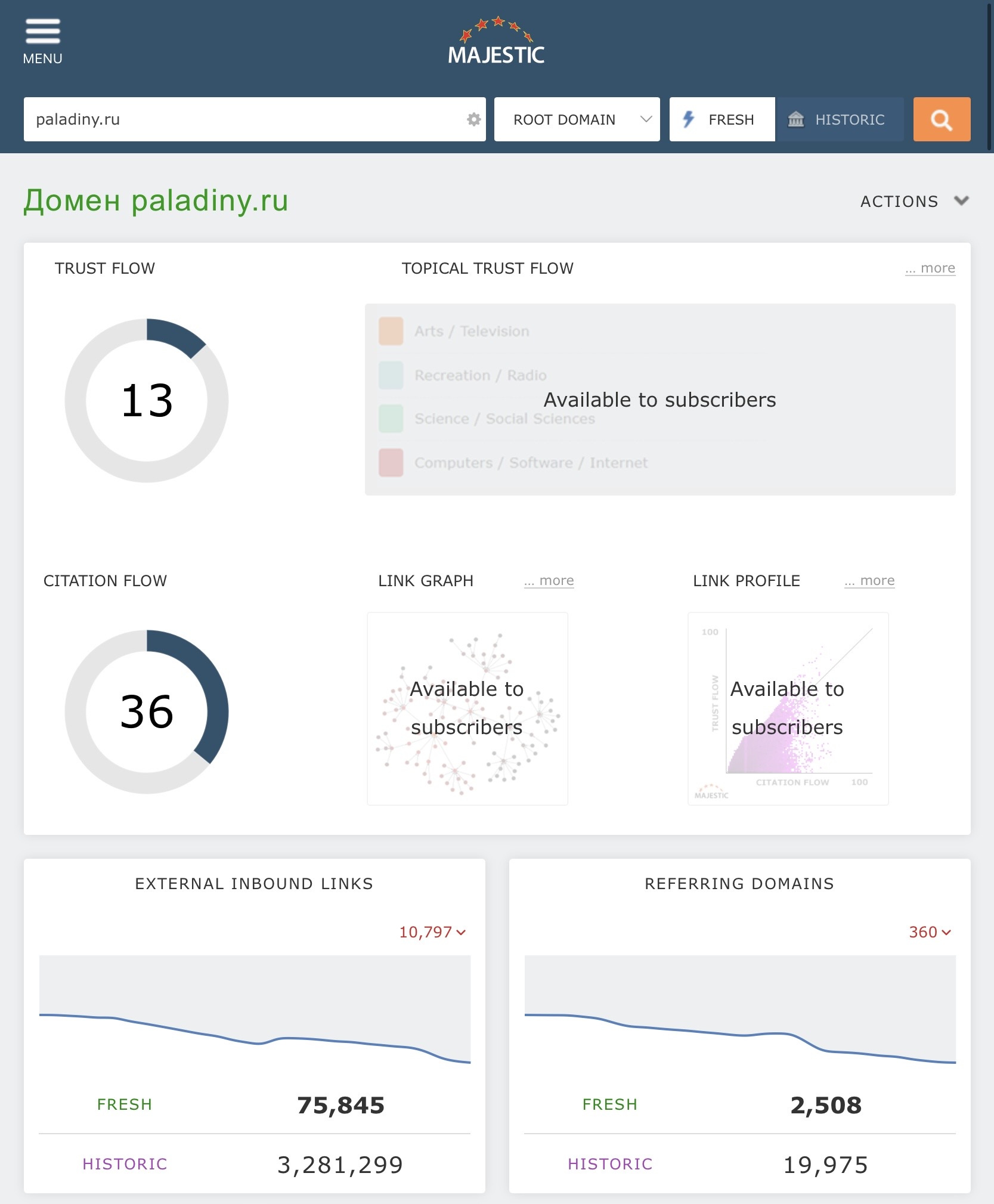 Домен paladiny.ru ИКС230 TF13/CF36 DA30/PA47 DR41