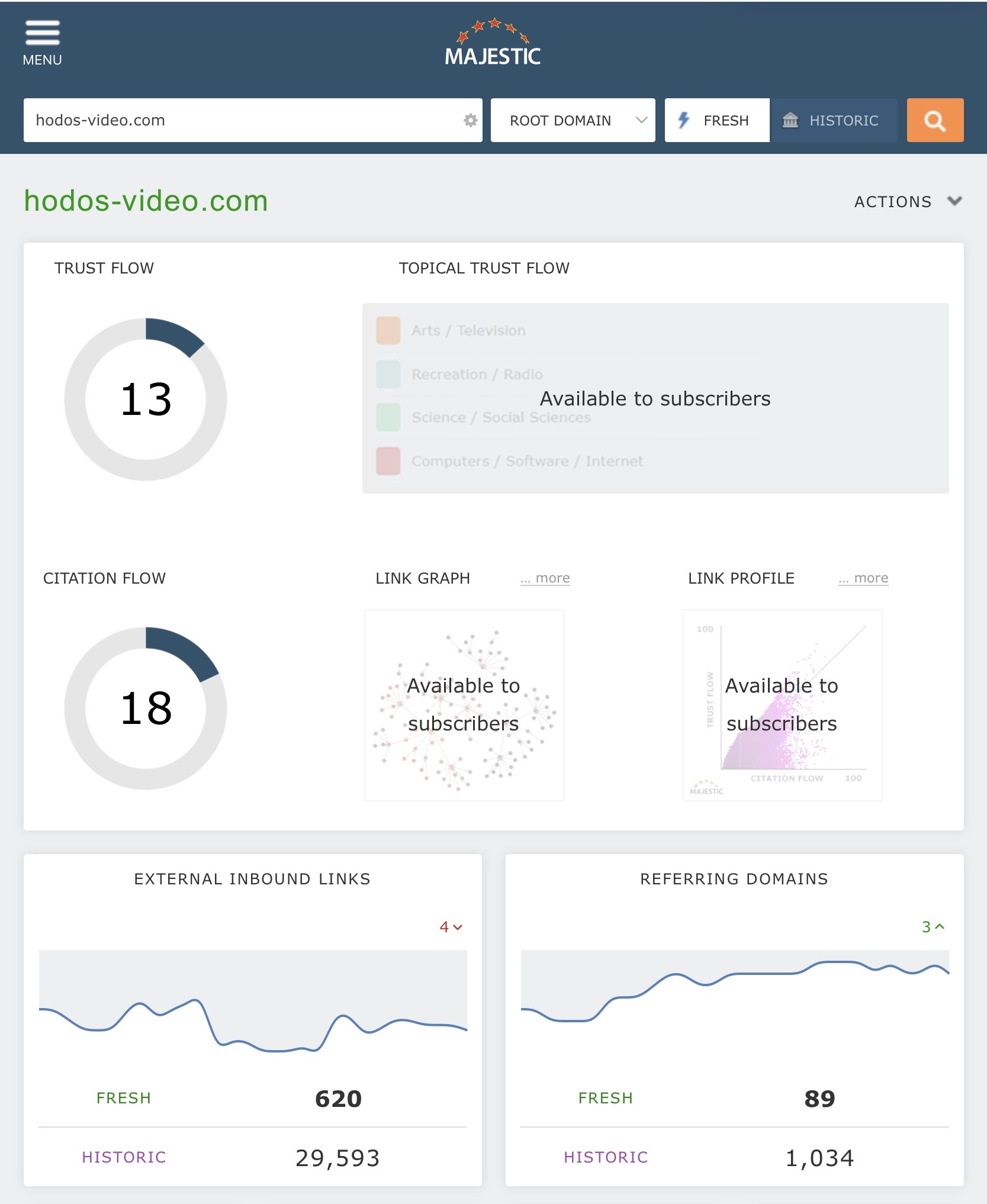 Домен hodos-video.com ИКС260 TF13/CF18 DA27/PA38 DR9