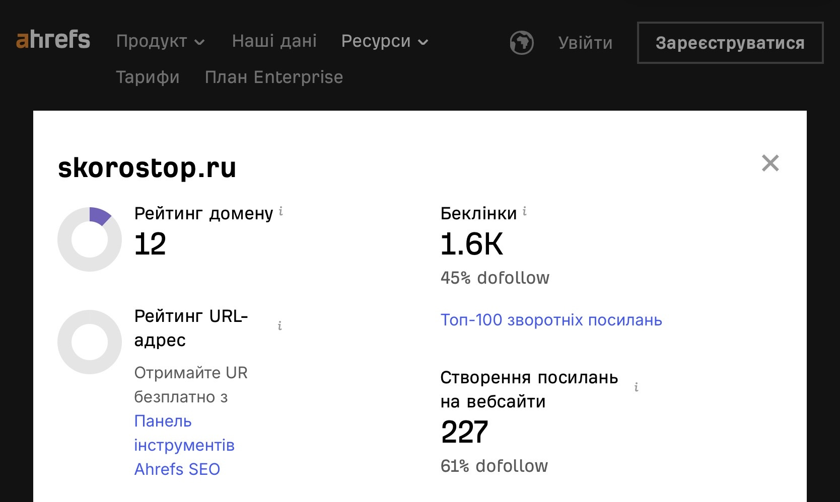 | Страниц в Google | Нет данных |
