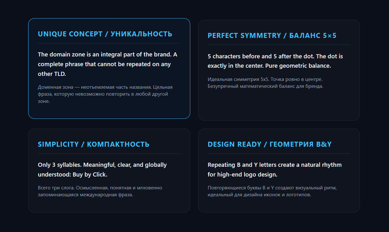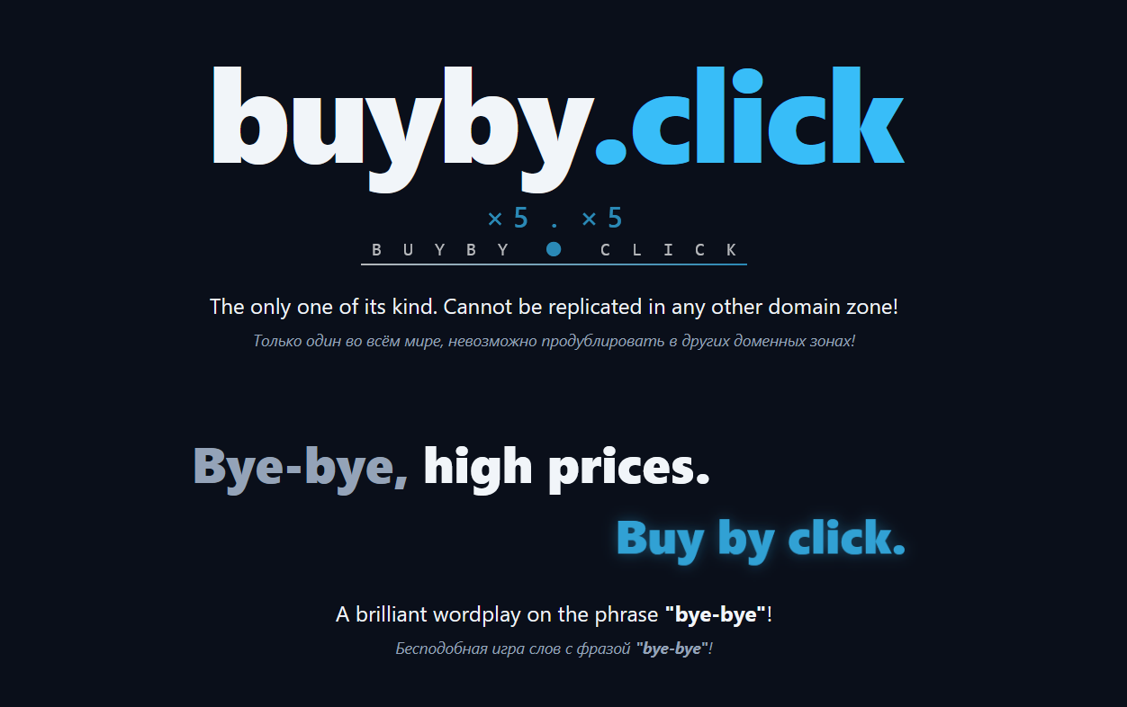 buyby.click | Уникальный домен-фраза "Купить в один клик", который невозможно повторить в других зонах!
