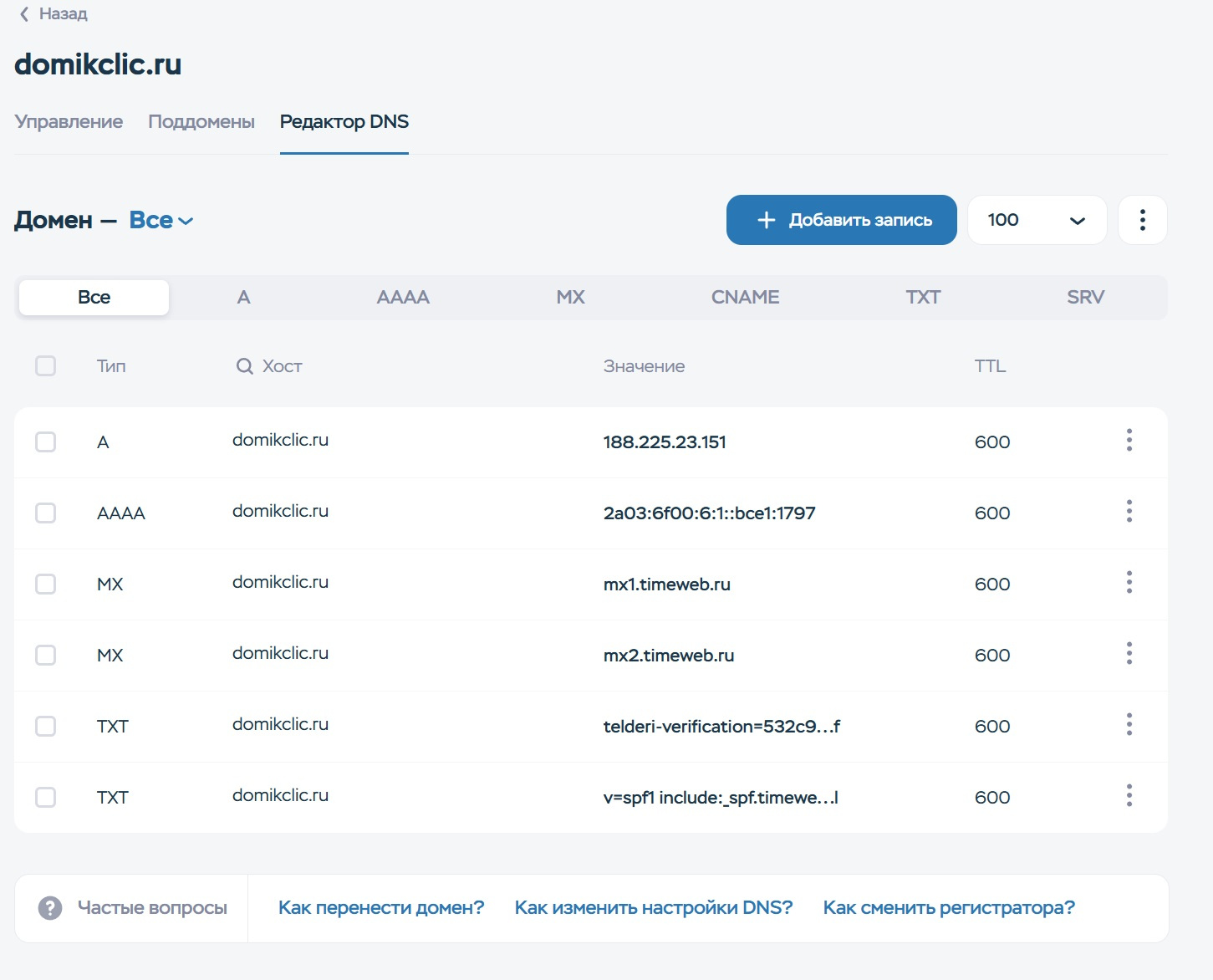 | Регистратор домена | timeweb.com |