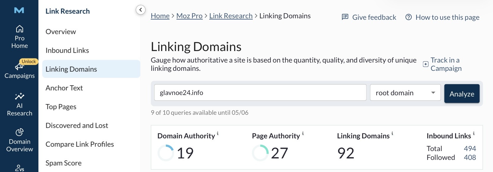 | Домен в поисковых системах | |
