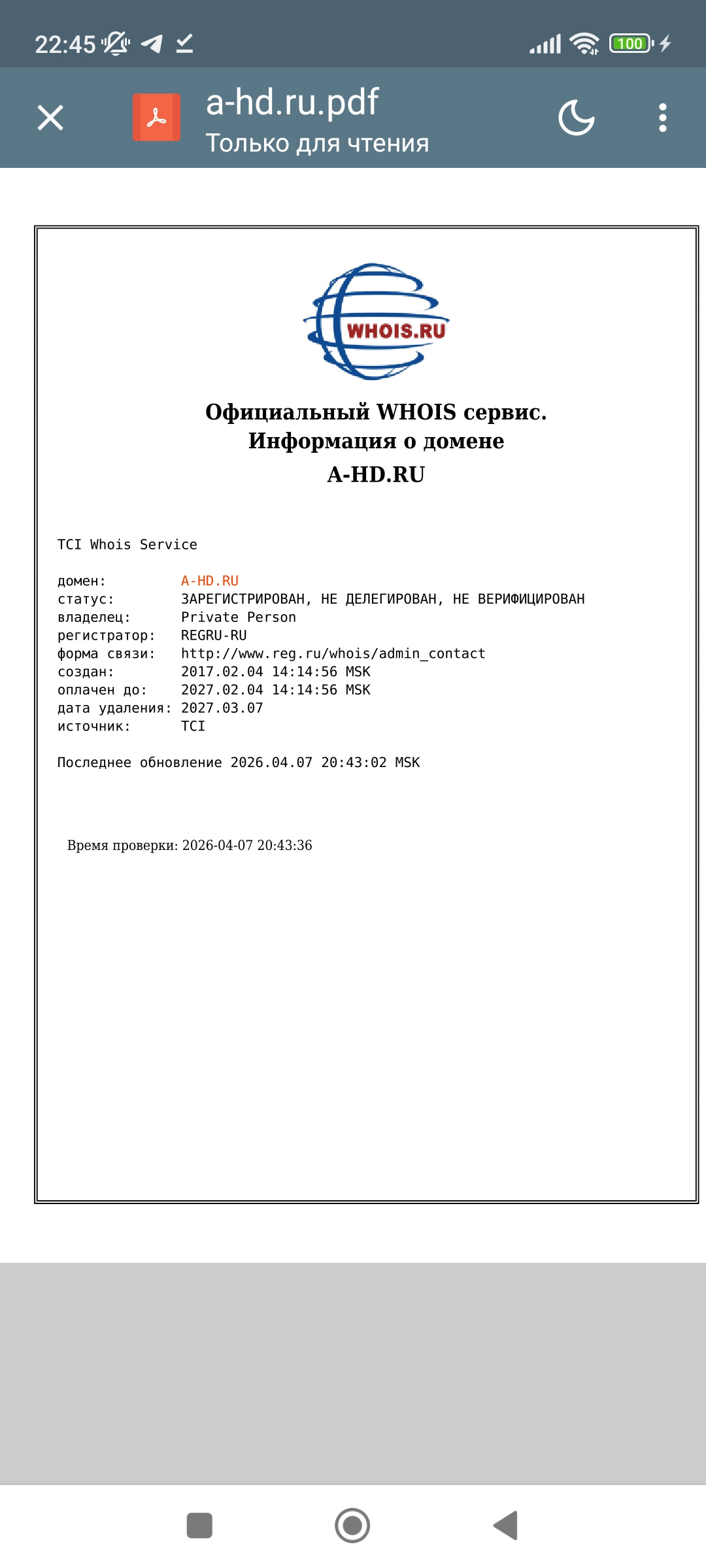 Домен a-hd.ru на продаже! Стандарт в отрасли видеонаблюдения A-HD. Короткий, запоминающийся, идеален для видео в HD, кино, стриминга или tech-проектов. Лаконичное имя с русским доменом.