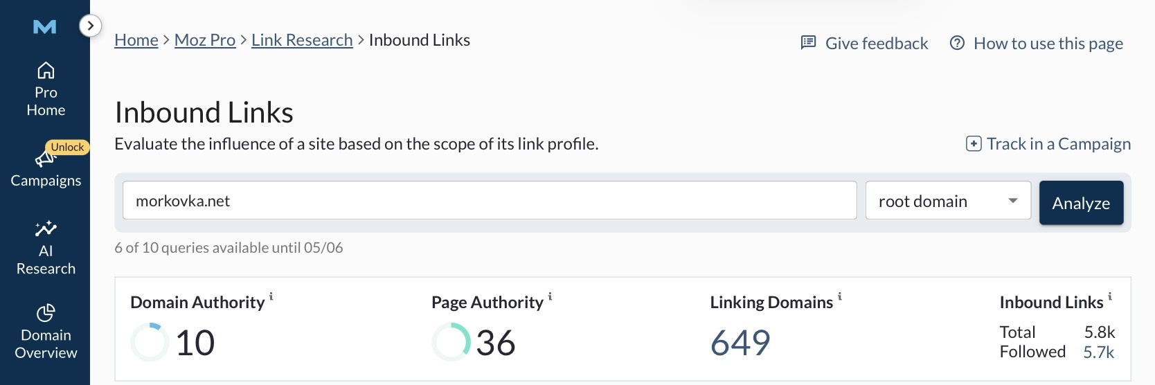 Домен morkovka.net ИКС 80 TF22/CF16 DA10/PA36