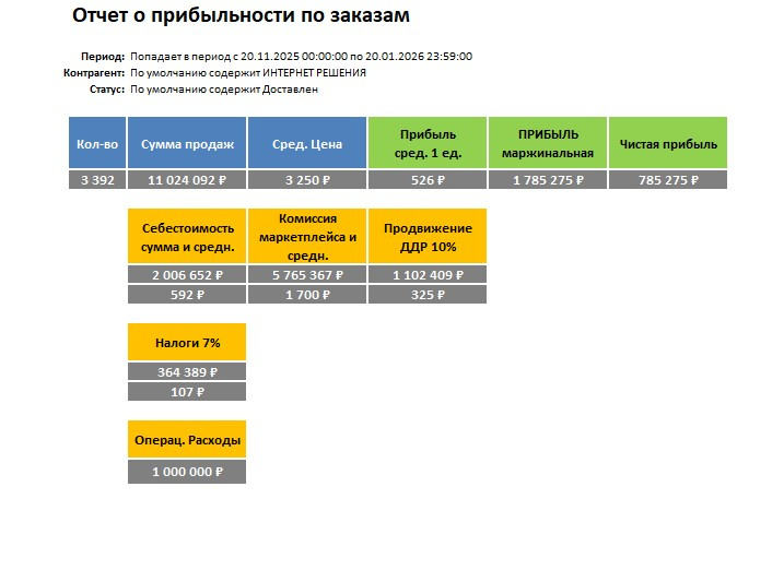 | Чистая прибыль (в мес.) | 500 000 руб. |