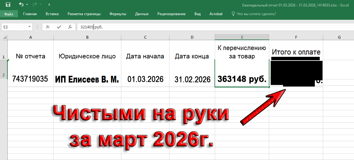 Чистая выручка за март 2026 года, составила 188804 рубля!