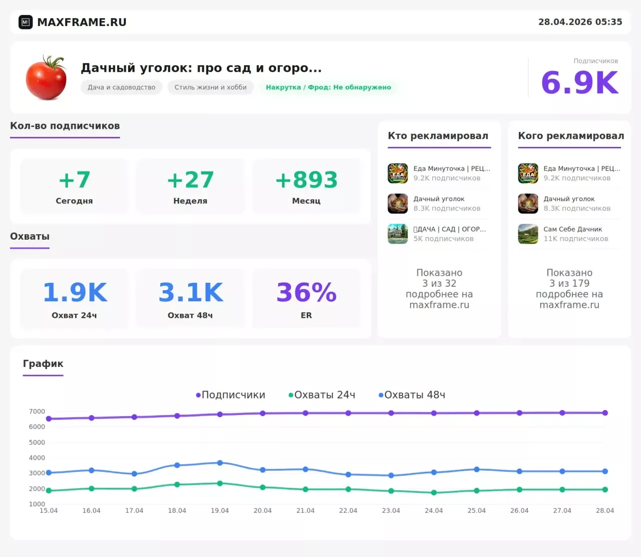 Продаётся открытый MAX‑канал в перспективной тематике «Дача, сад, огород». В канале размещаются практичные советы и идеи для сада и огорода.