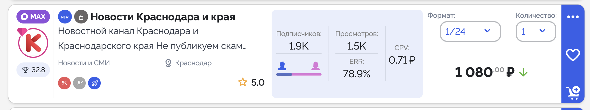 Оба канал на данный момент входя в То10 каналов на telega.in по гео Краснодар, что привлекает прямых рекламодателей.