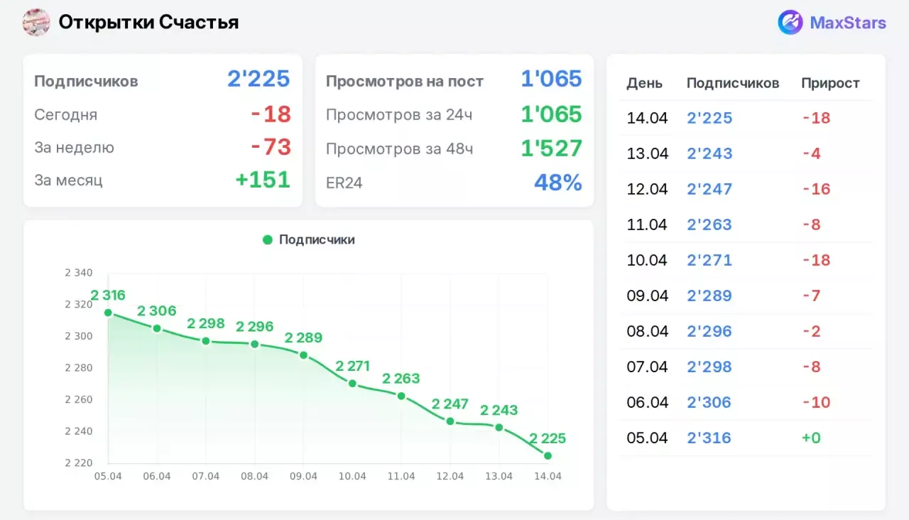 Добрый день! Продается публичный отрытый канал, без ботов , накруток и прочего. Каналу пол года. Охват полностью живой.