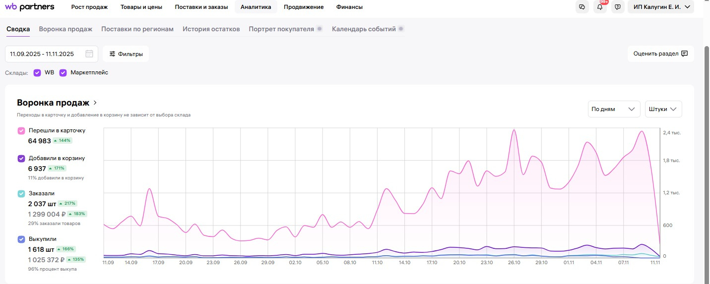 Обычно продают либо не ликвидный товар, либо по не адекватной цене. У нас ситуация иная: мы реально продаем 3 года на ВБ. Можем показать кабинет там все наглядно, также историю на ВБ оборачиваемости, с учетом того что оборот это не прибыль. Предоставим данные сквозной аналитики. Остатков хватит на 1-1,5 месяца.