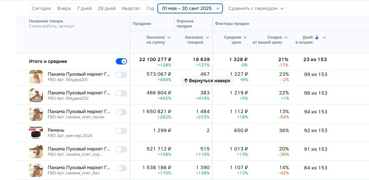 Отчет по выручке предоставлен по двум склейкам: Шляпы и Панамы (другой аукцион).