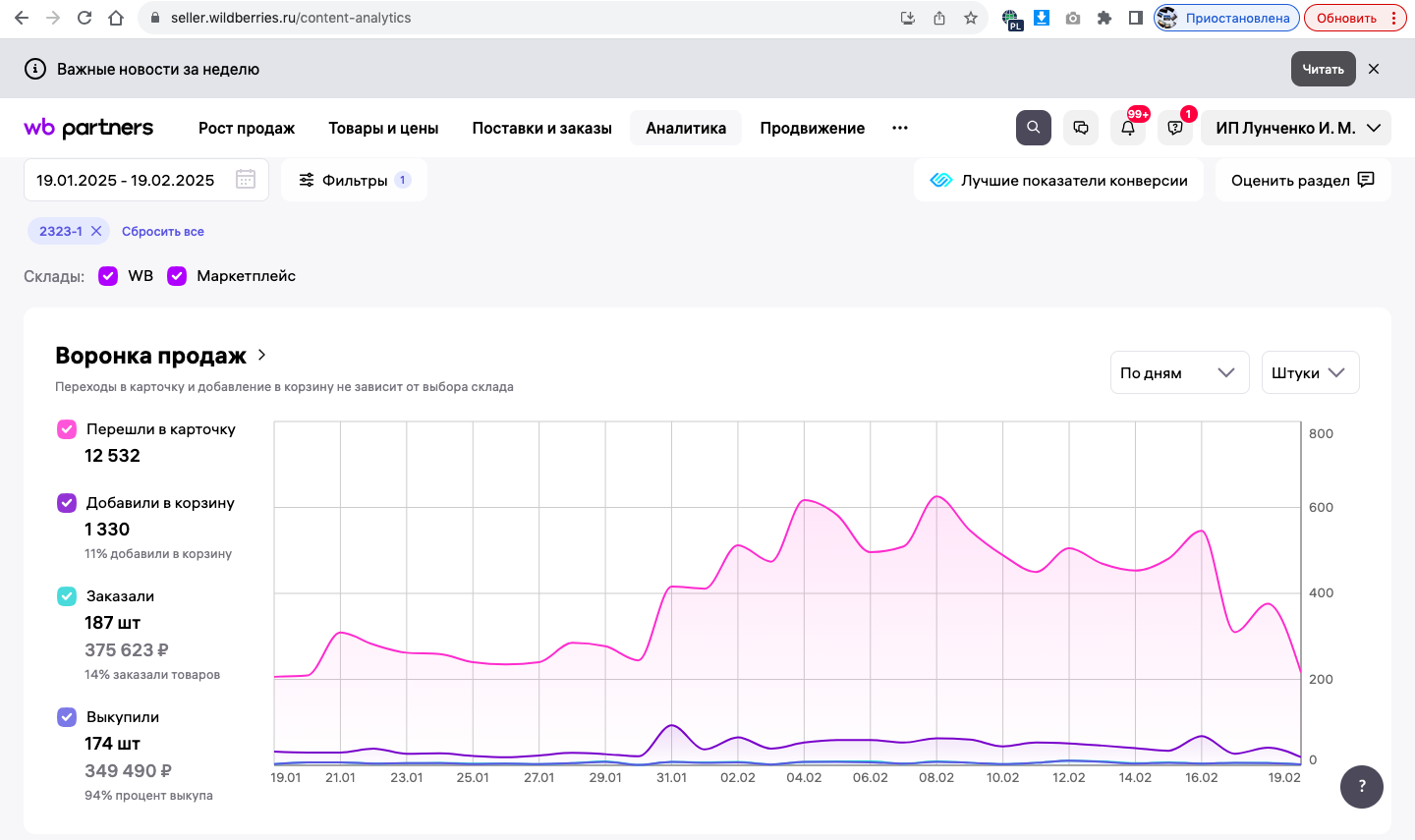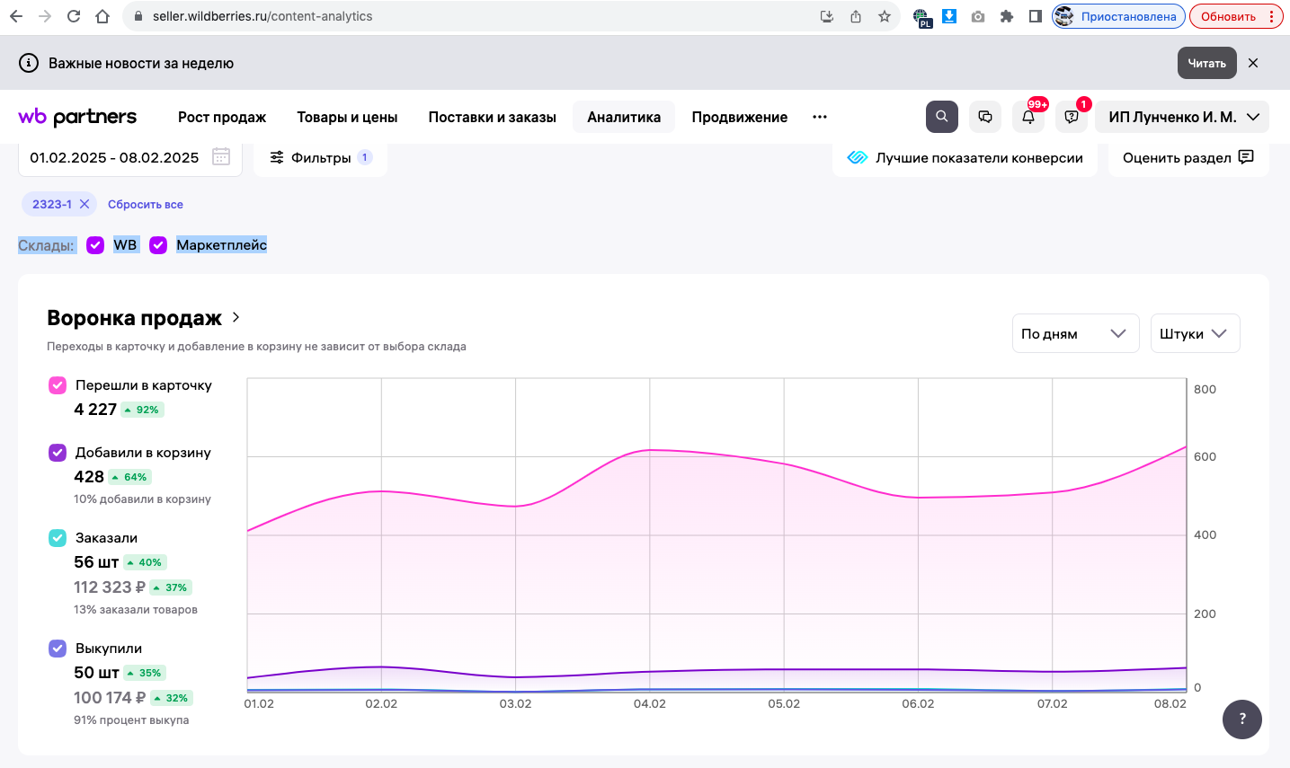 Карточка длительное время находилась в ТОП-выдаче по целевым запросам внутри ниши.