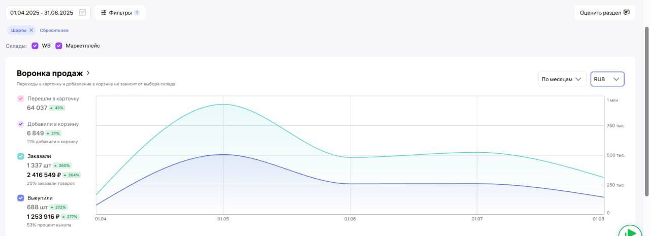 - Процент выкупа 60% (для категории одежды это превосходно)