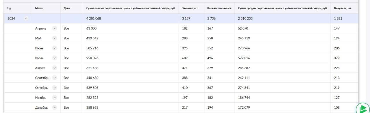 - Реальные пpoдaжи, прикрепляю выгрузку из кабинета за 2024-2025 год