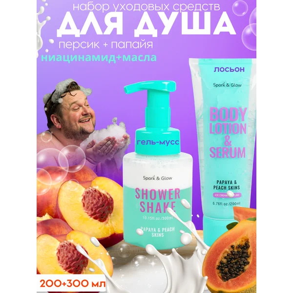 Готовая продавающая карточка вб : Набор для душа ( гель+лосьон)