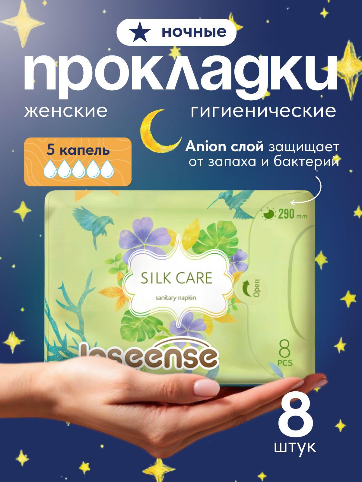 Прокладки женские гигиенические ночные Inseense Silk Care, 5 капель, 8 шт