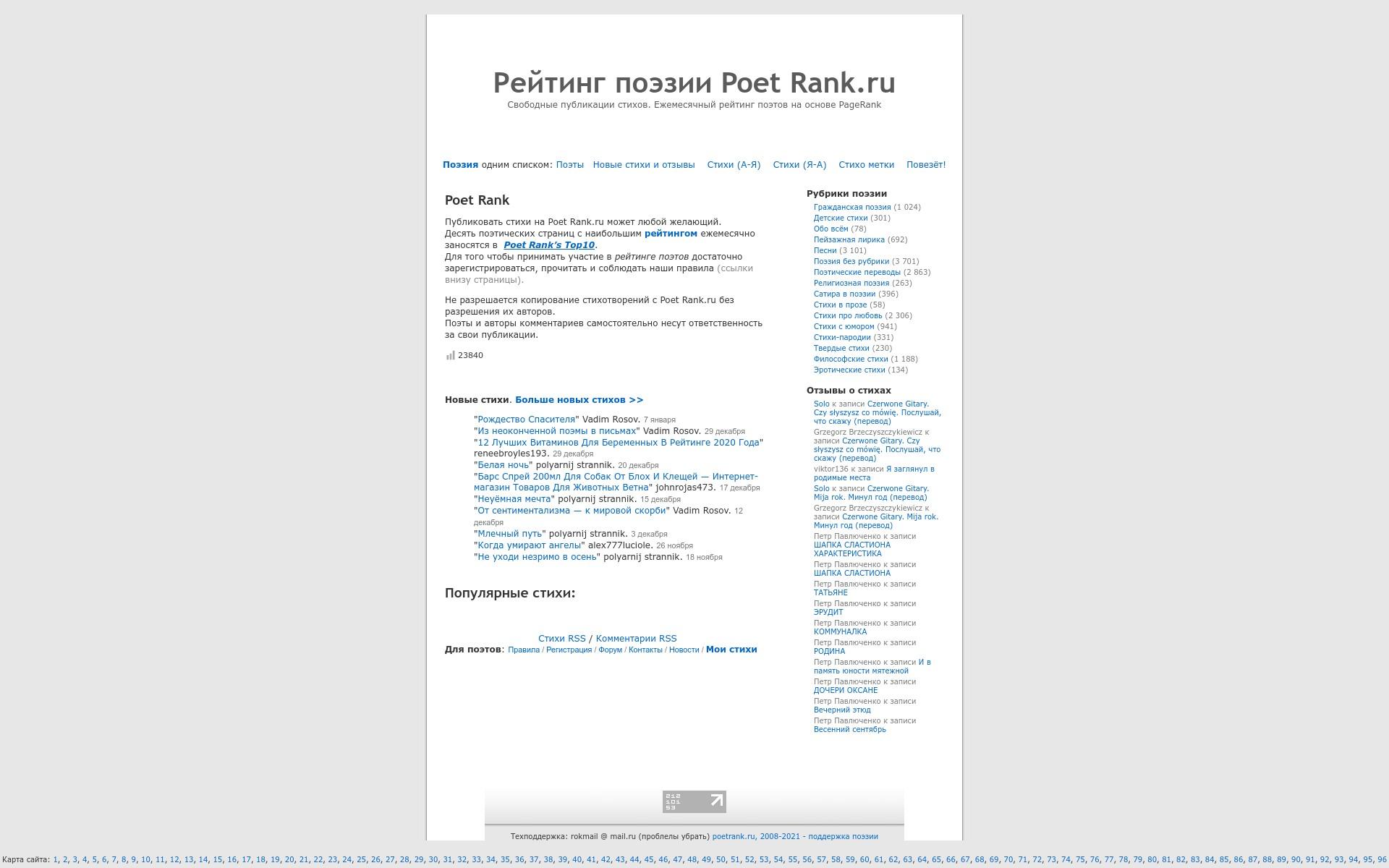 Вместе с сайтом передается Рейтинг поэтов http://top10.poetrank.ru/