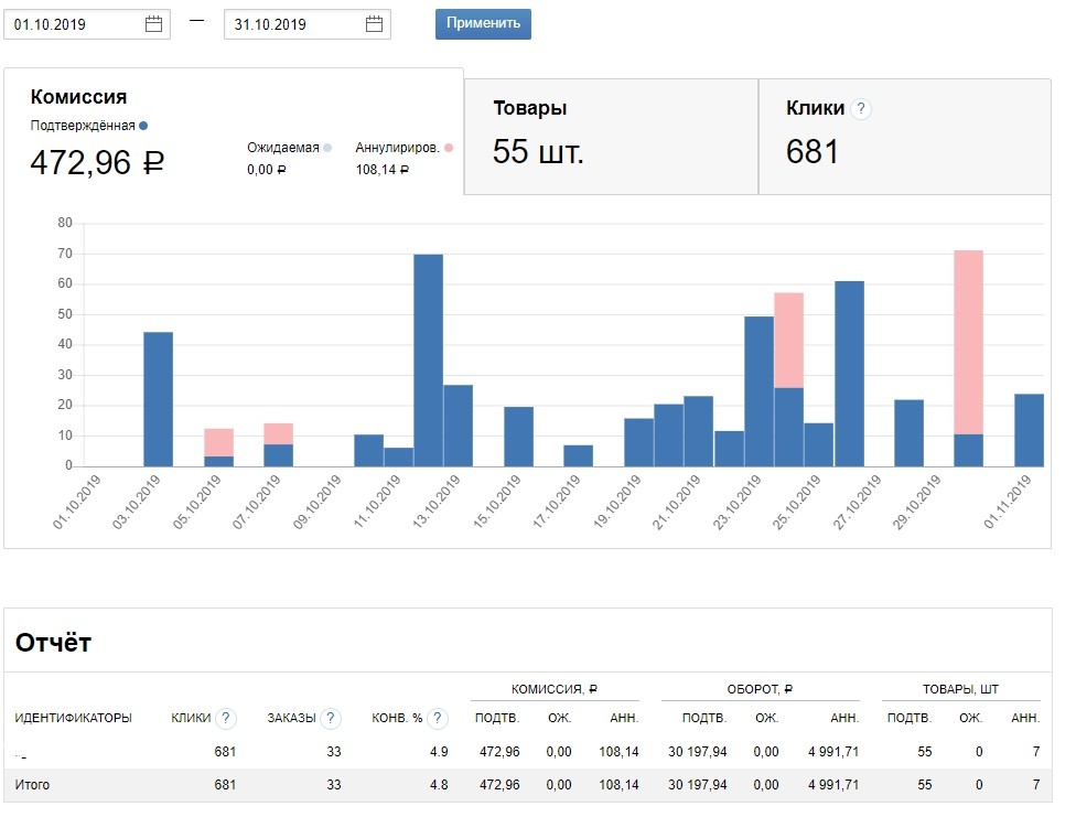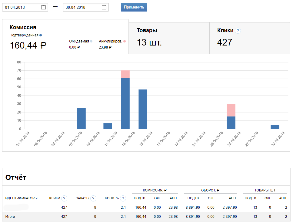 CPA (партнерские программы):243 ₽ / 100%