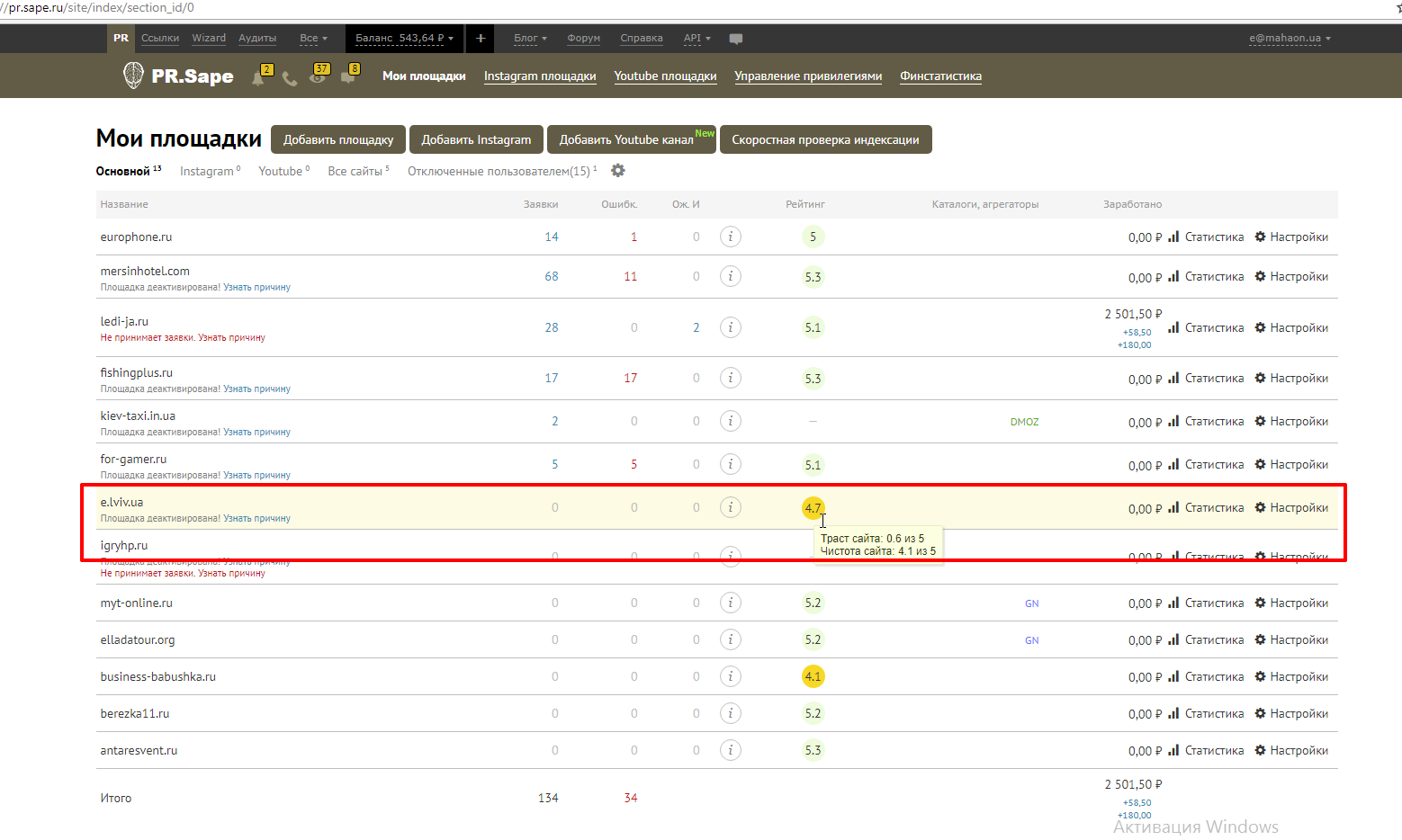 Бан в системах монетизации:Нет