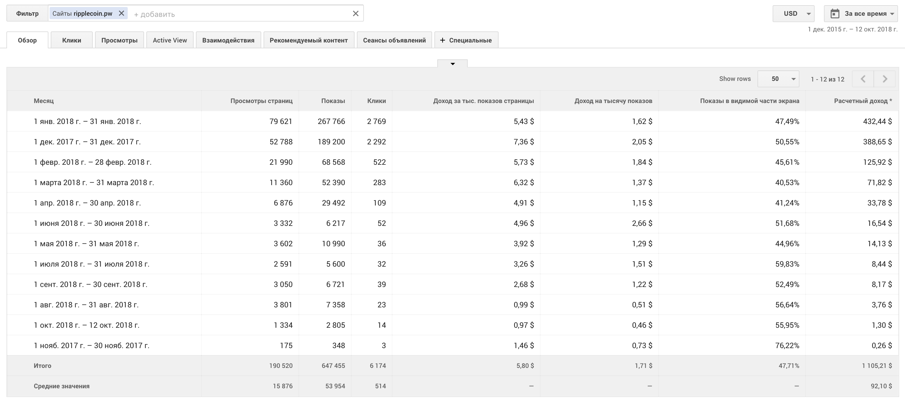 Сайт был сделан на подъеме роста интереса к крипте осенью 2017 и роста альткоина Риппл в частности. После нового года произошел спад, что и отразилось на посещалке.