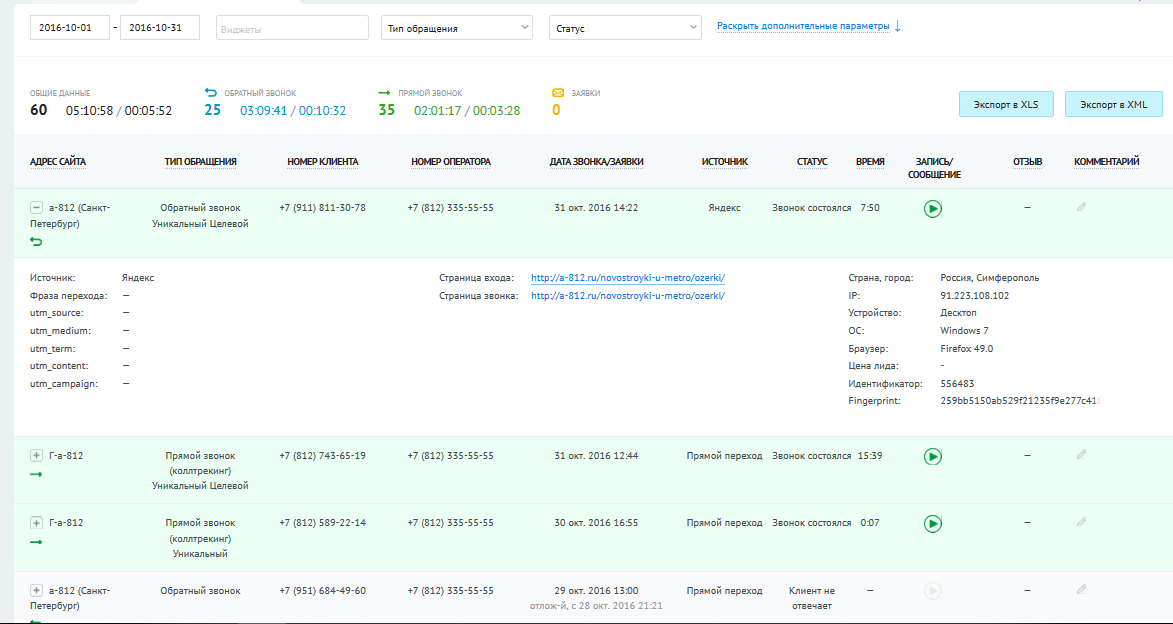 Для примера прикрепляю скриншоты счетов, статистику звонков и т.д.