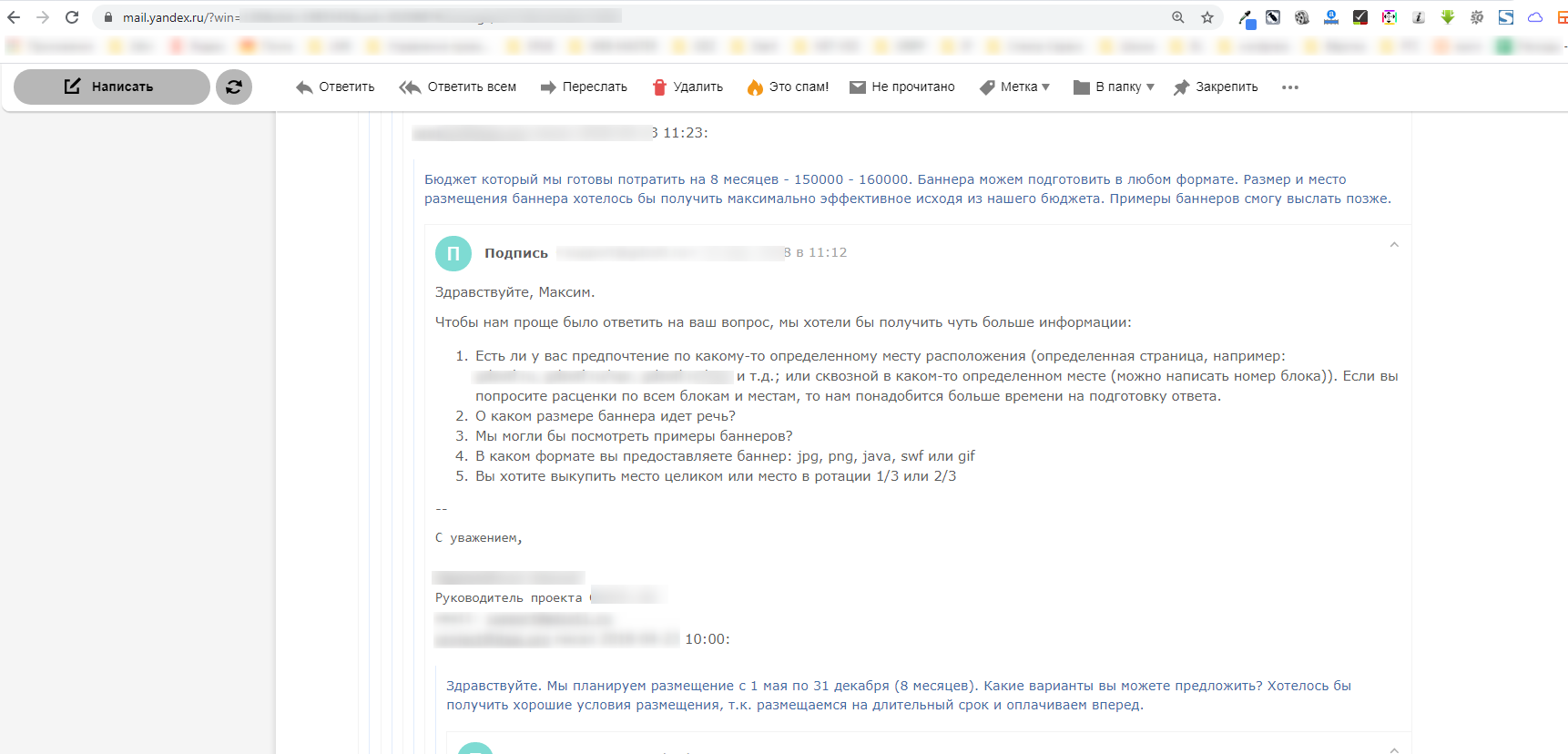 - поступало предложение о размещении прямой рекламы за 160 000 на 8 месяцев, но мы прошляпили этот запрос, а когда ответили, было уже поздно - институт закупил рекламу на другой площадке. Делал однократную рассылку по институтам (штук 50-60 вузов) с предложением о размещении. Получил заказ на размещение рекламного блока на 1 неделю - 3900 р. [информацию могу подтвердить договором]